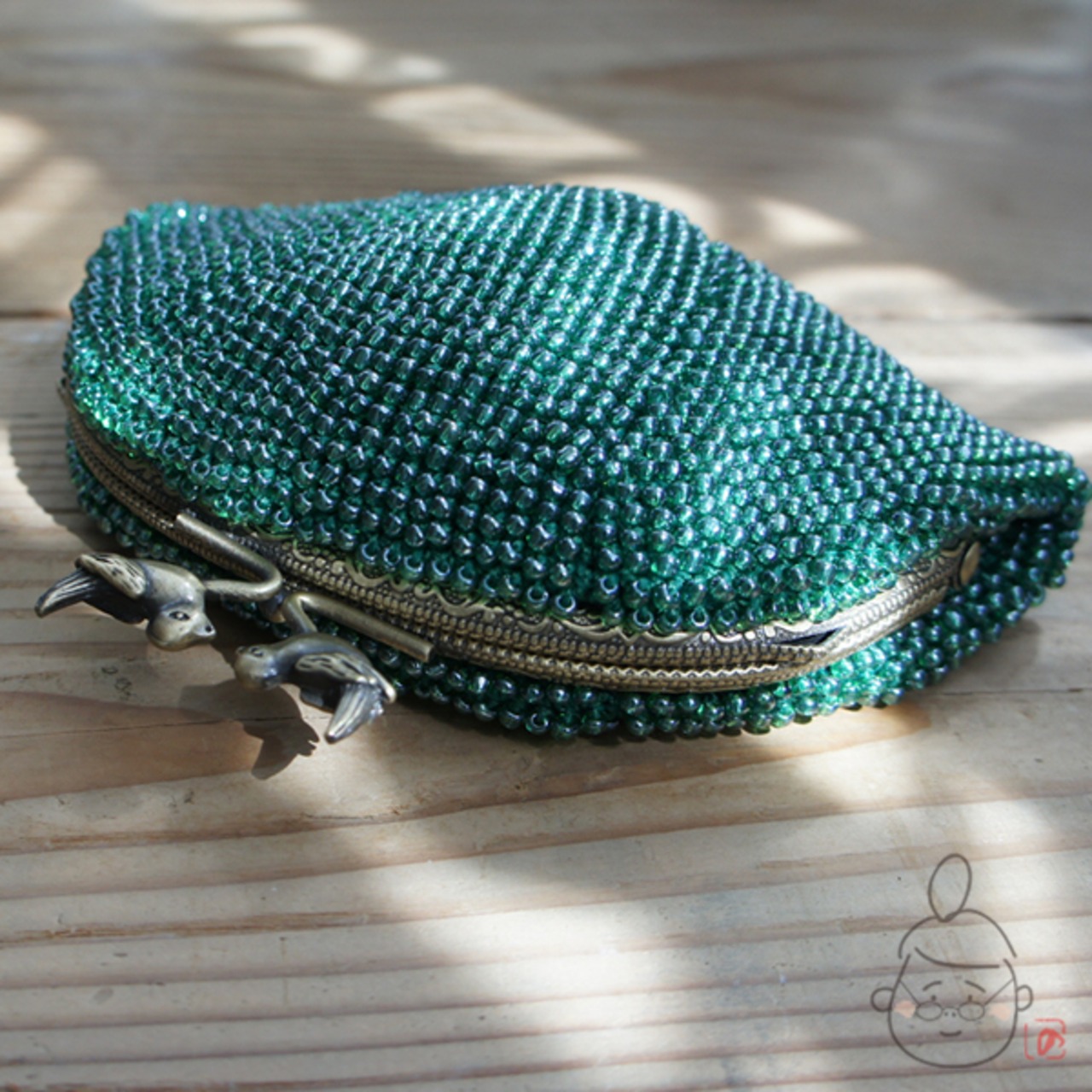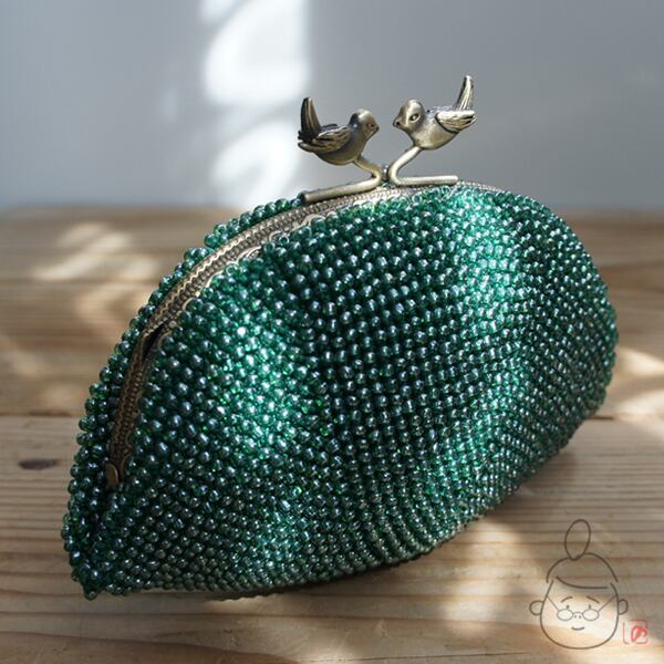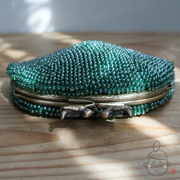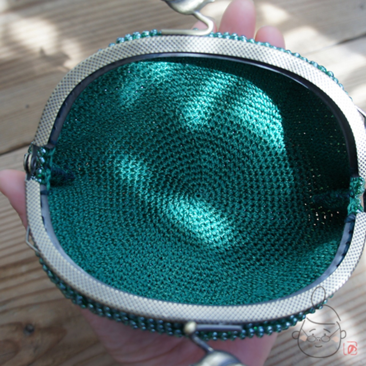 ばあば作☆☆さらに大きめ☆ガラスビーズがま口(paradise green・1180)