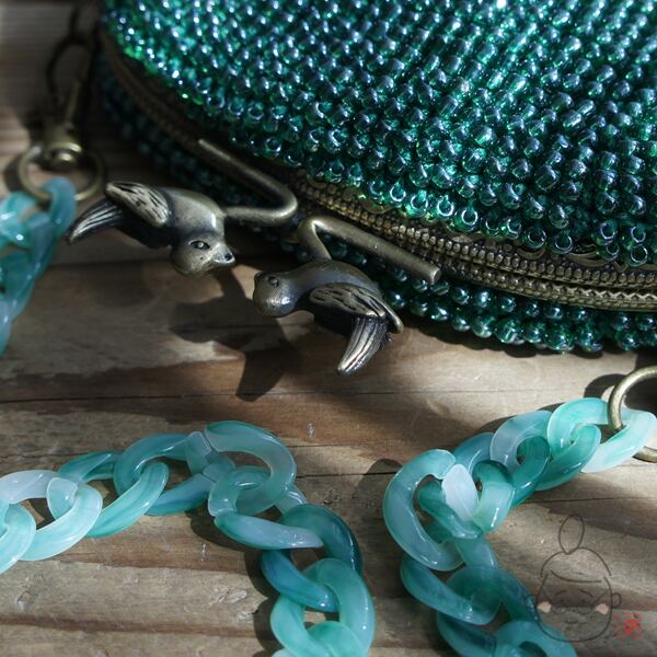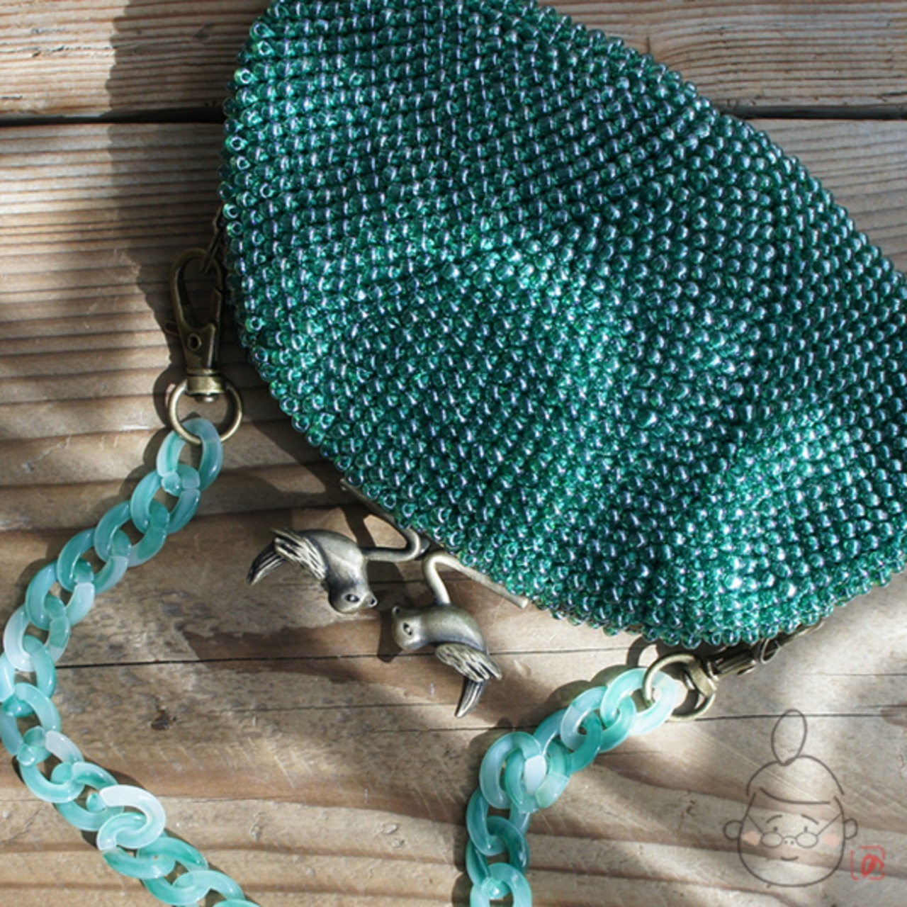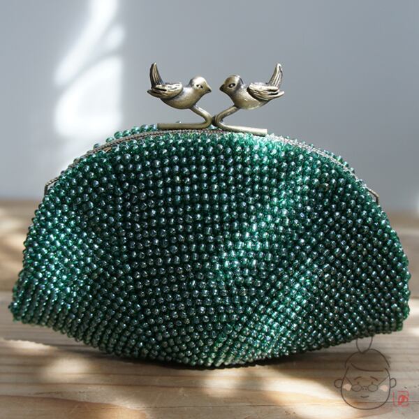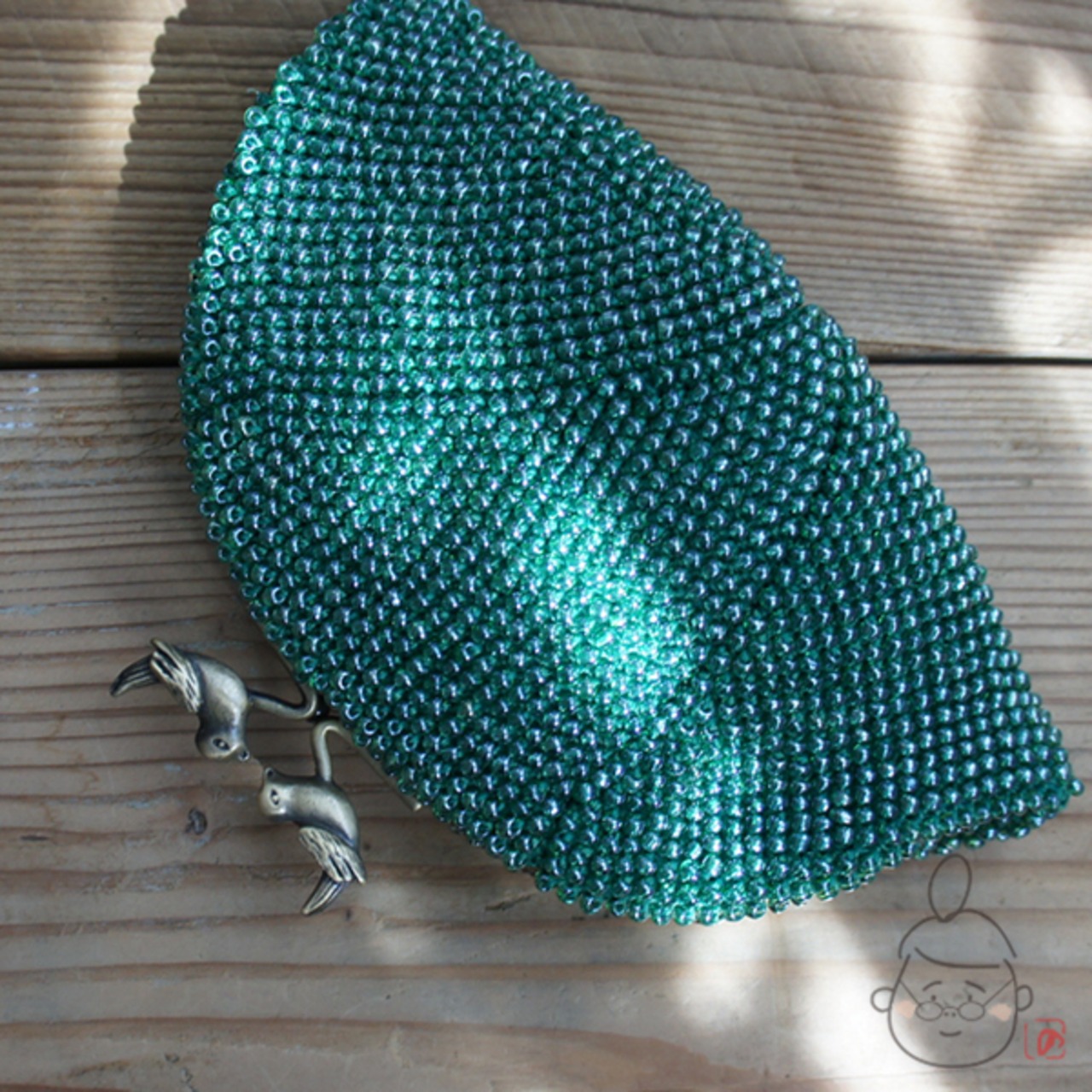 ばあば作☆☆さらに大きめ☆ガラスビーズがま口(paradise green・1180)