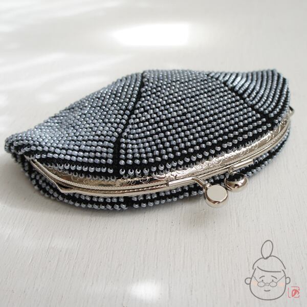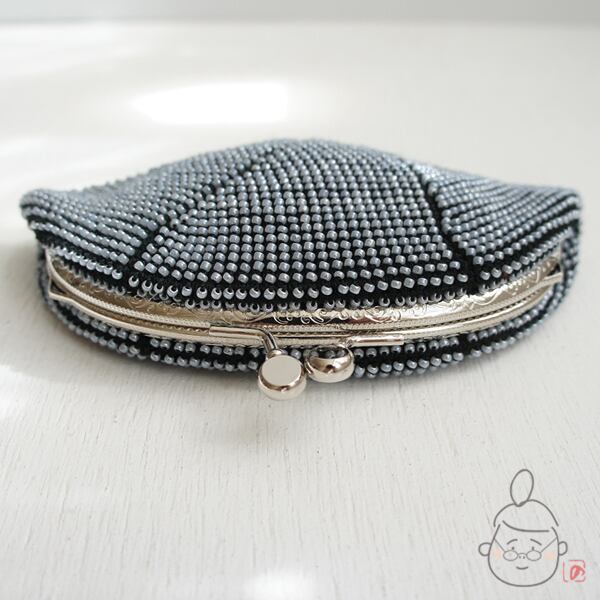 ばあば作☆シードビーズのさらに大きめがま口(mistgray・1271)