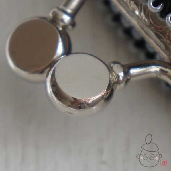口金 : シルバー、おはじきつまみ、12.5cm、くし型、両カン