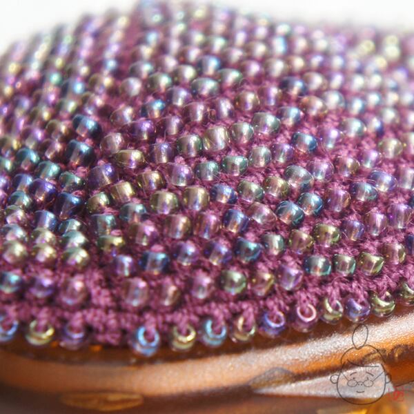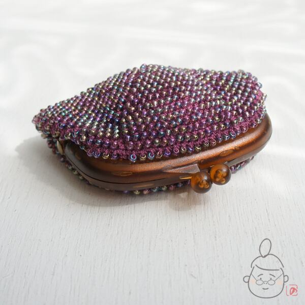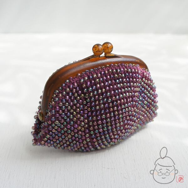 ガラスビーズをひとつぶづつ編み込んだ手のひらサイズのがま口です。