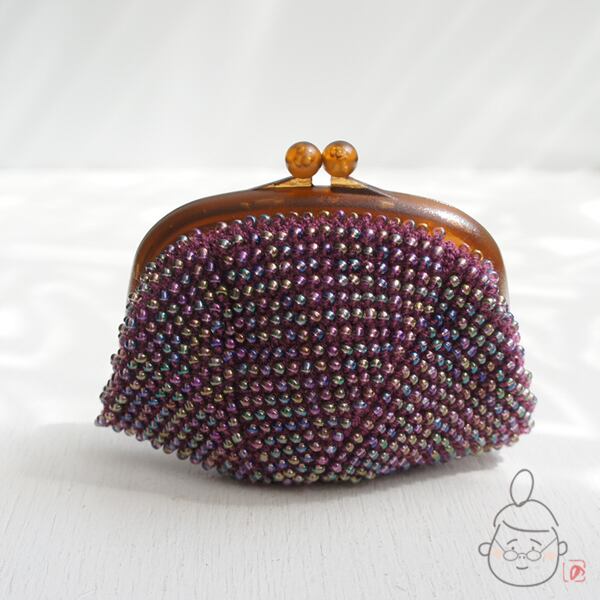 ばあば作☆☆ガラスビーズのプラがま(raisin・1265)