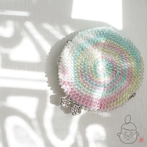 クリアパールのビーズに、パステルカラー段染めの色がきれいに透けて見えます。