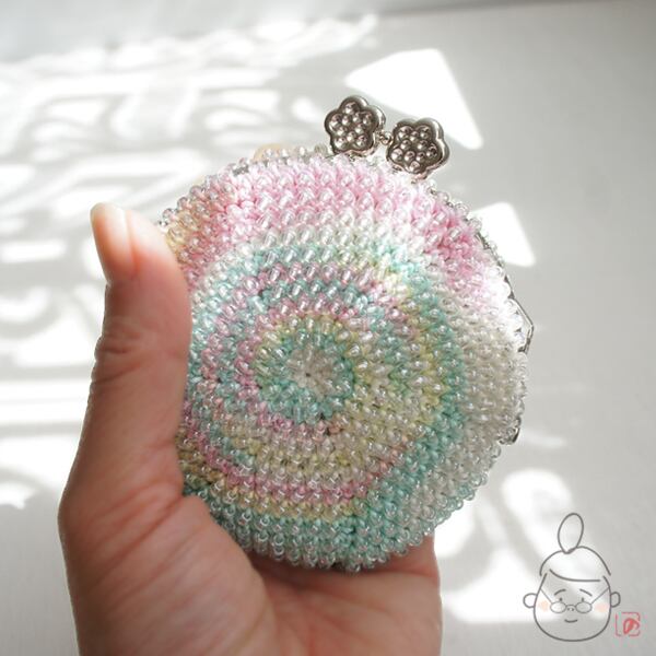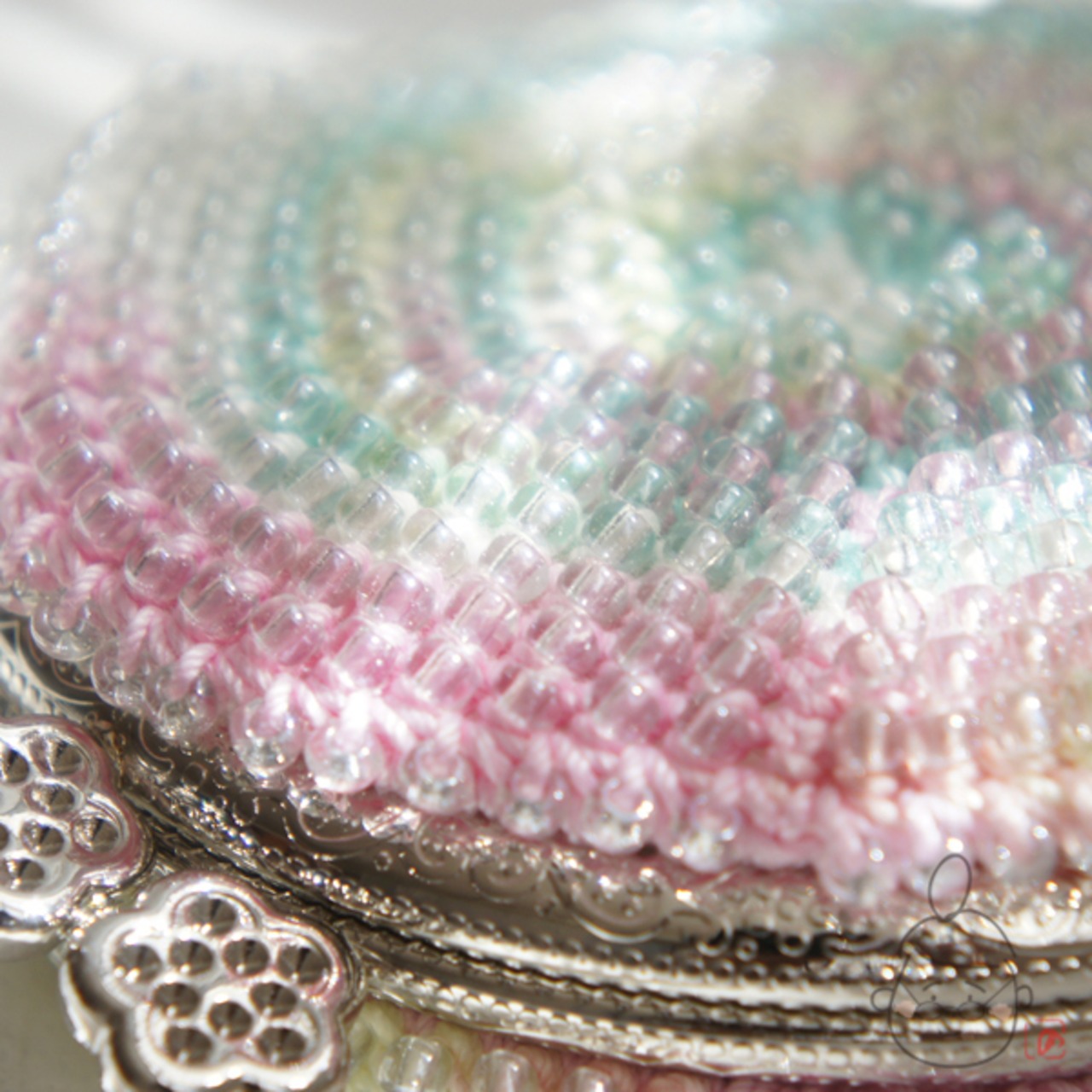 3mmのビーズをひとつぶづつ、全面に編み込みました。
