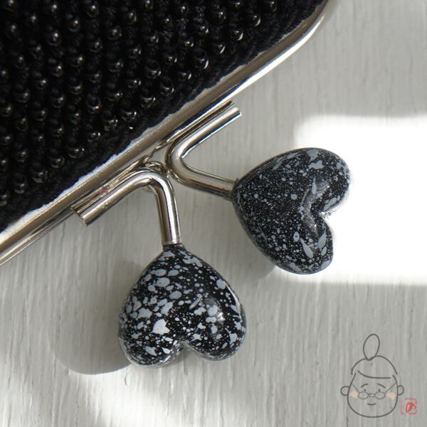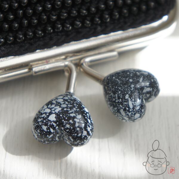 口金 : シルバー、スプラッシュペイントハートつまみ、8.5cm、角型、片カン