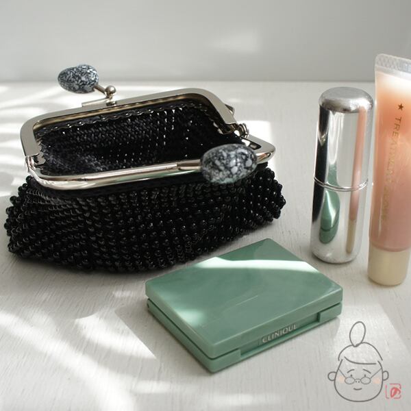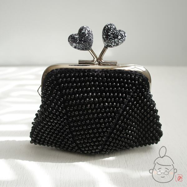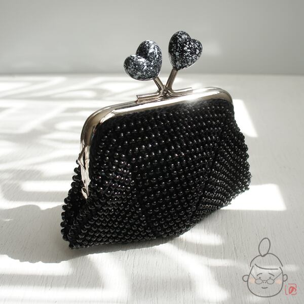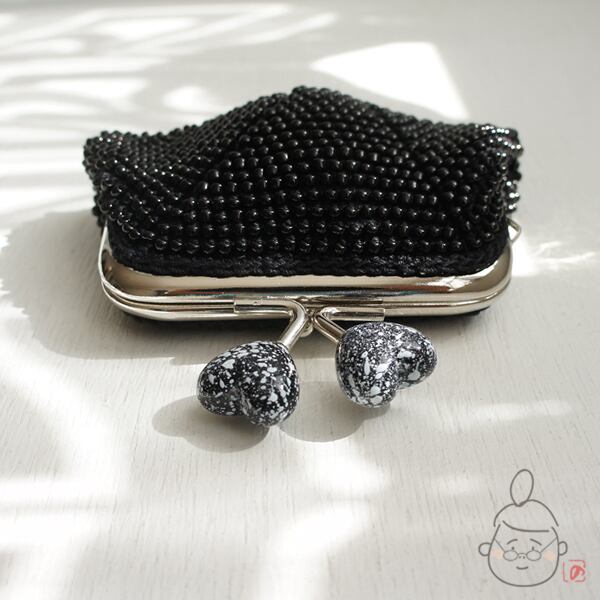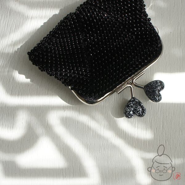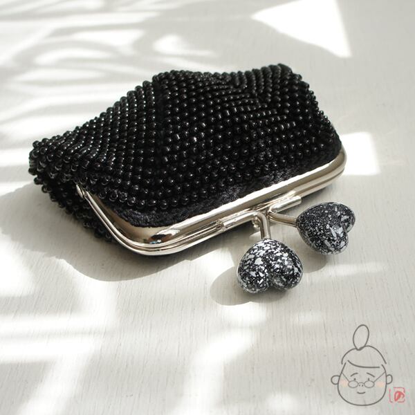 ばあば作♥ガラスビーズのスクエアがま口(monochrome・1251)