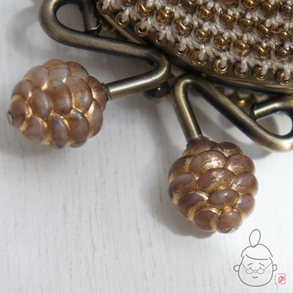 ドイツ製ヴィンテージのほっこりカワイイ松ぼっくりのビーズをつまみ部分に使用、