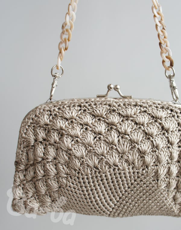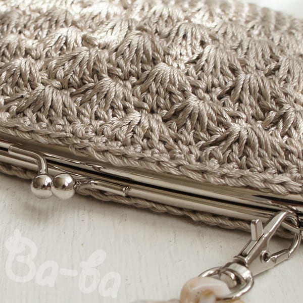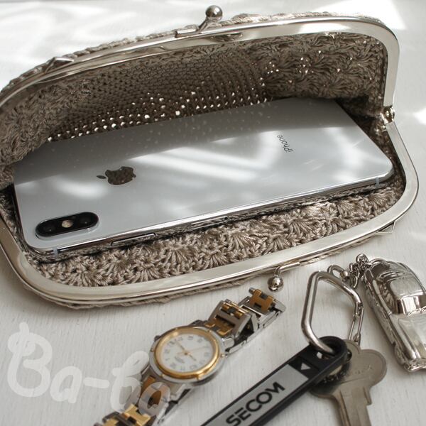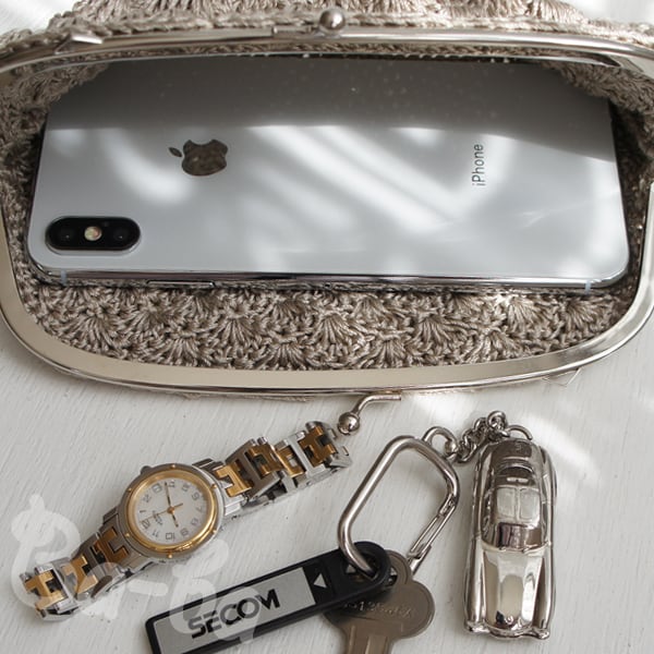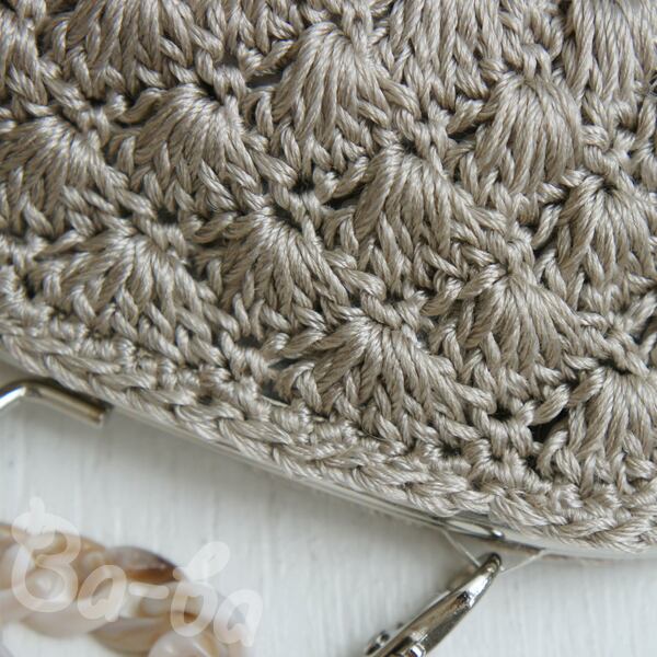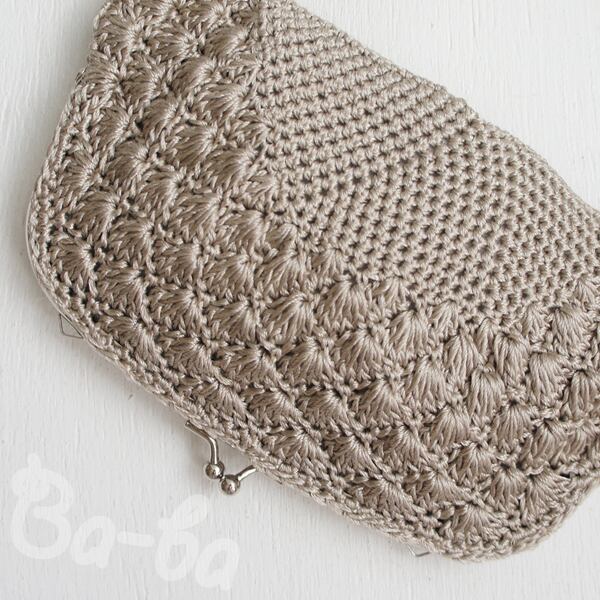 立体的な松編みの編み地に、シンプルな口金を合わせました。