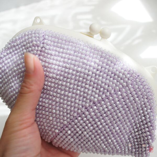 全面にガラスビーズを編み込んでプチバッグを制作しました。
