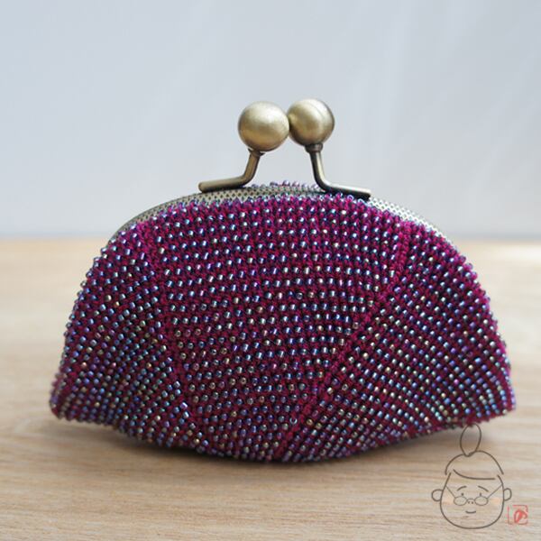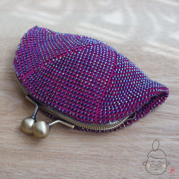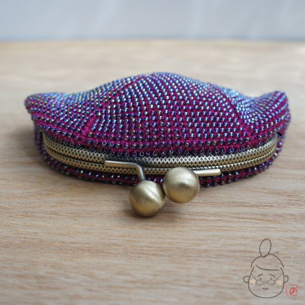 ばあば作♪シードビーズの大きめがま口(ラズベリー・1277)