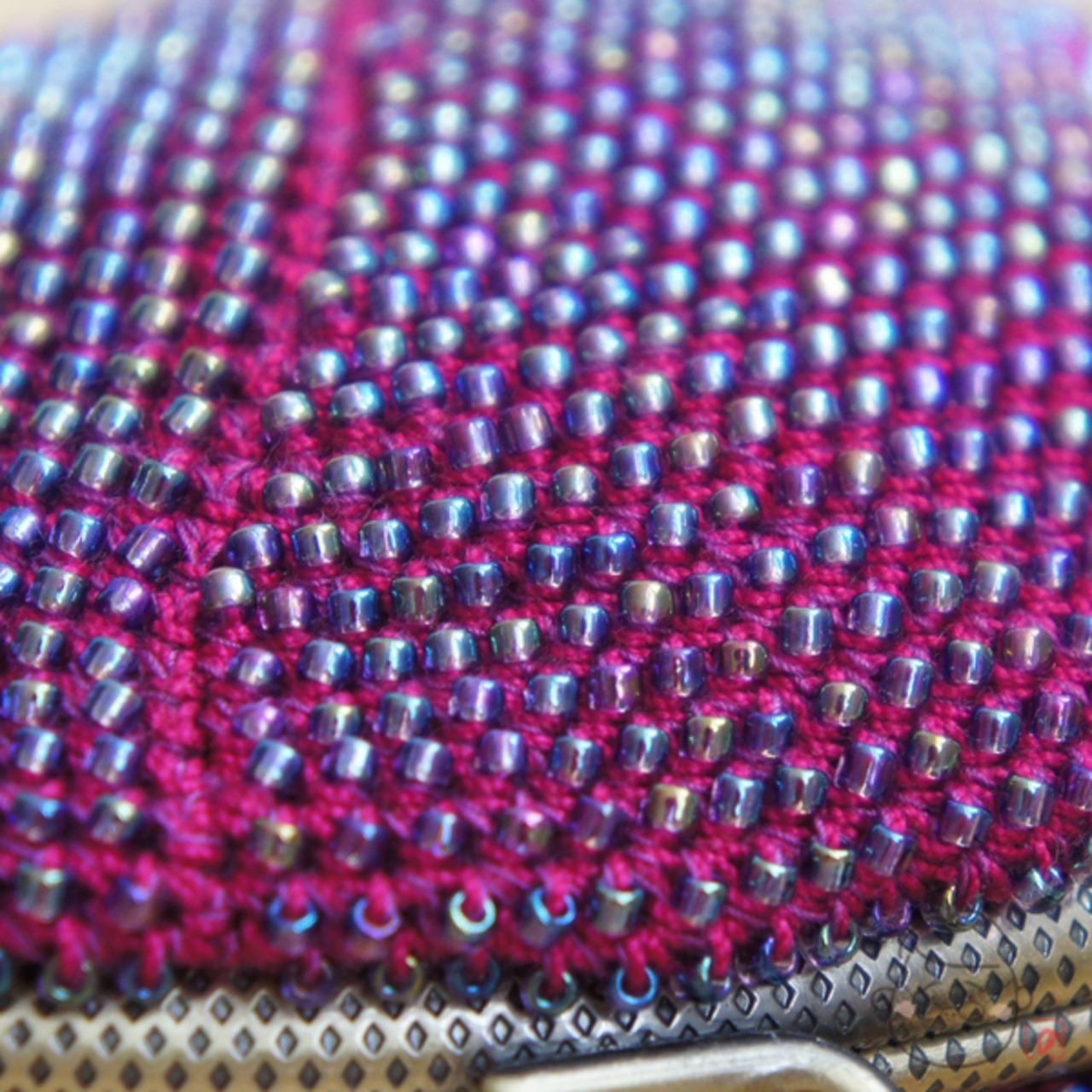 レインボーに輝く、2mmの日本製シードビーズをひとつぶづつ全面に編み込んだ、