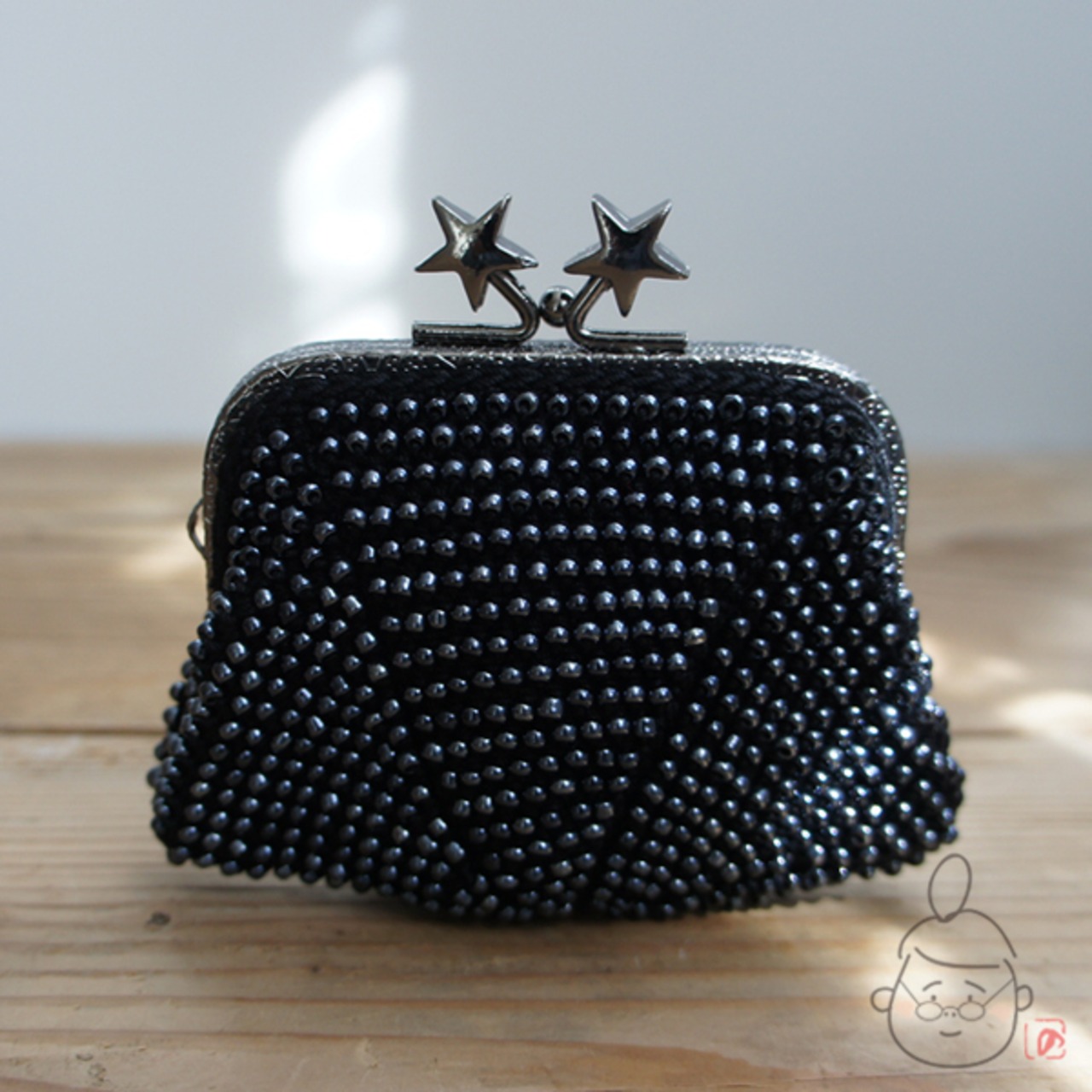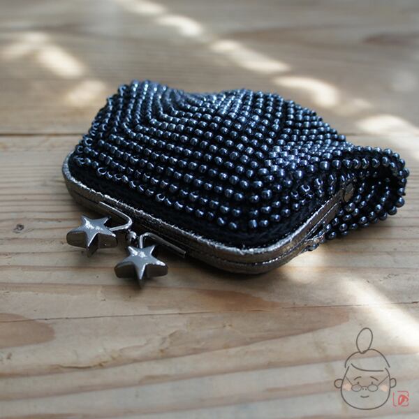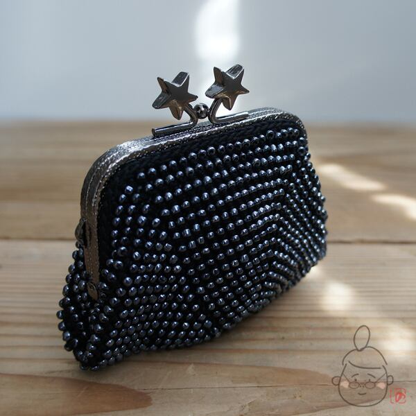 ばあば作☆ガラスビーズのスクエアがま口(ながれぼし・1182)