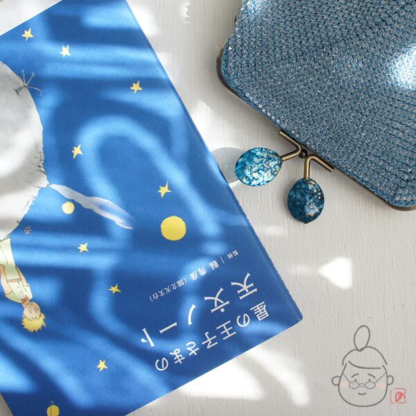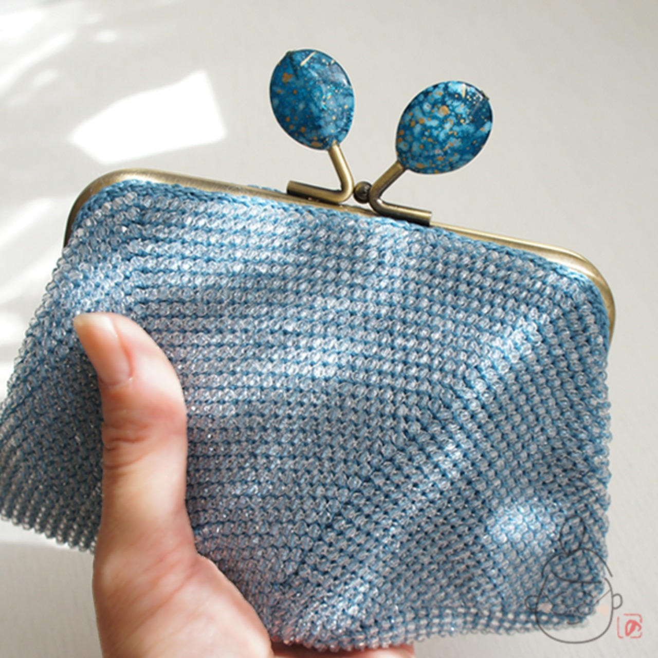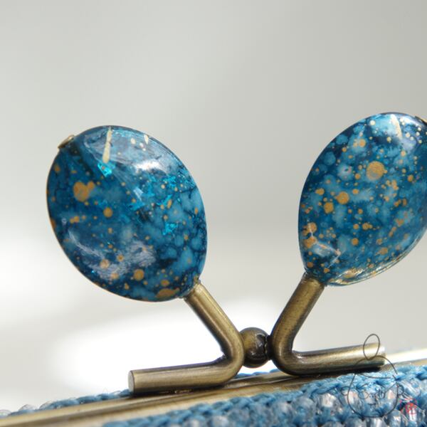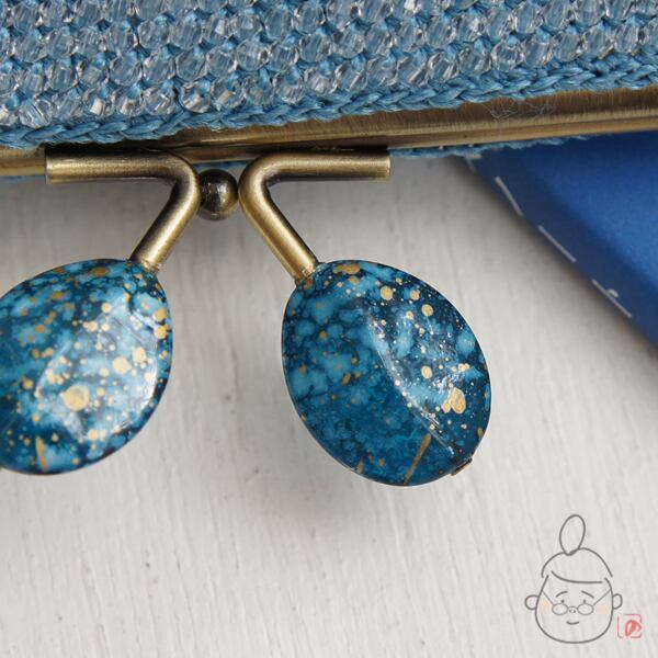 口金 : アンティークゴールド、コズミックブルーつまみ、12.5cm、角型、両カン