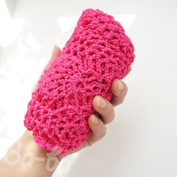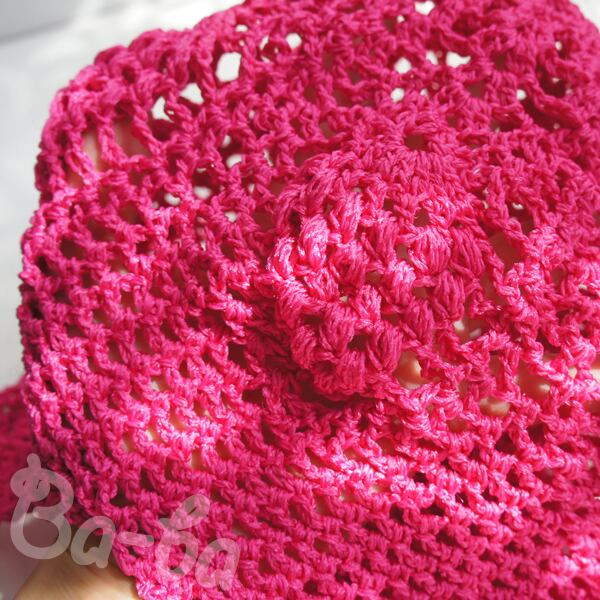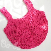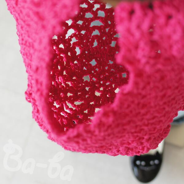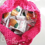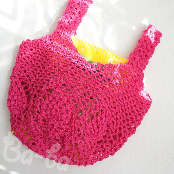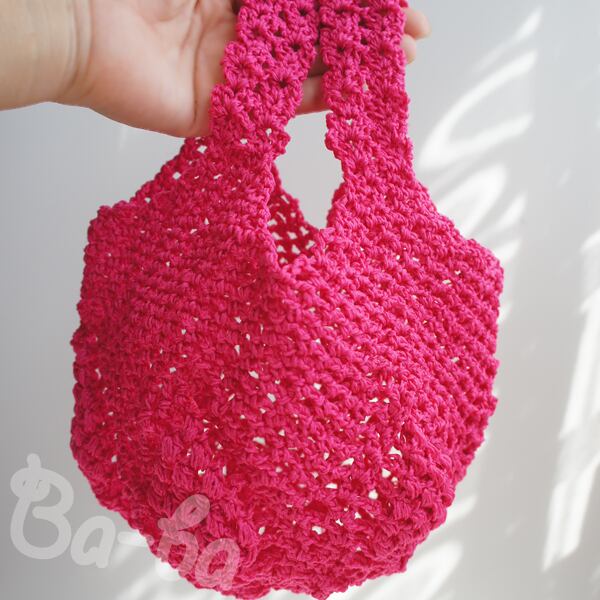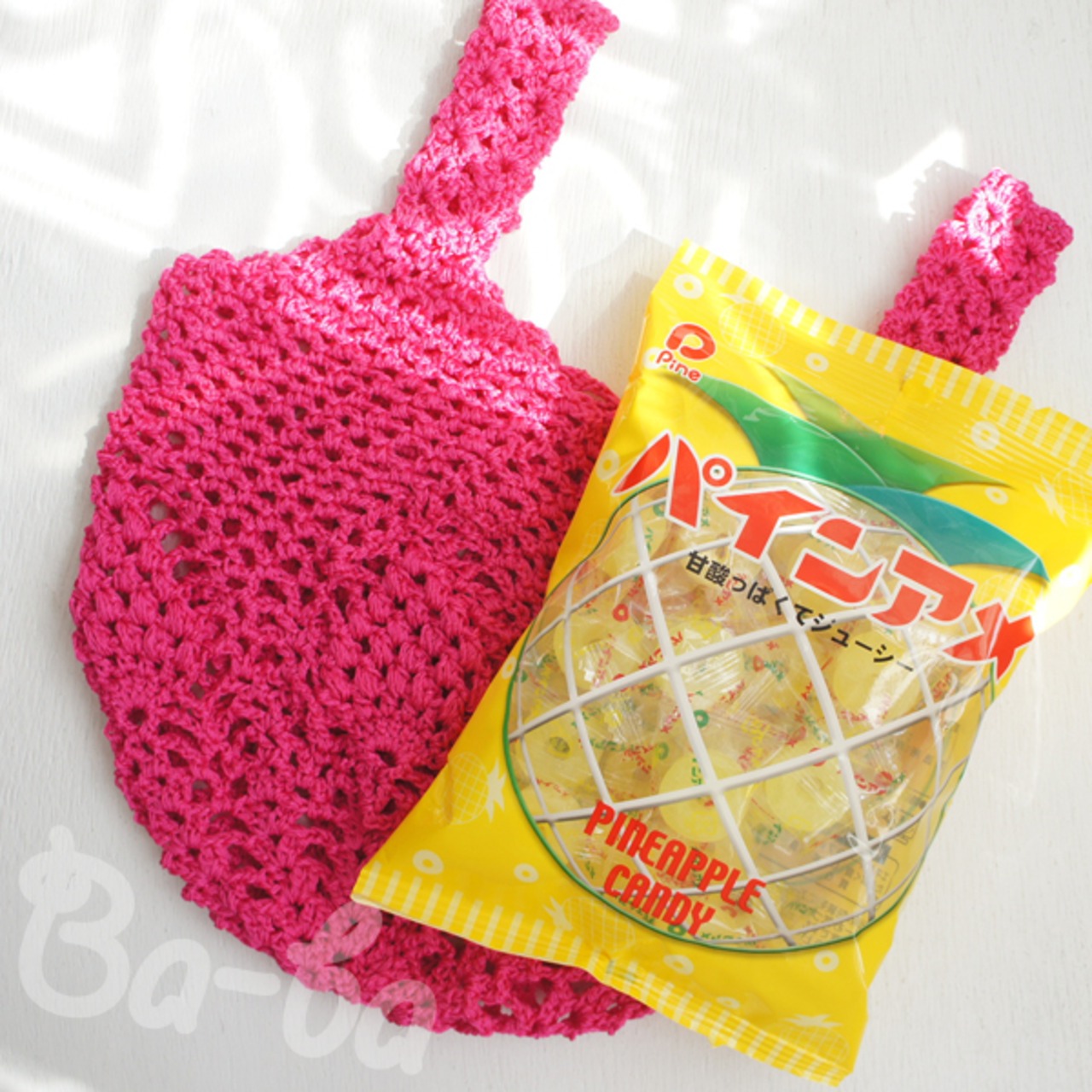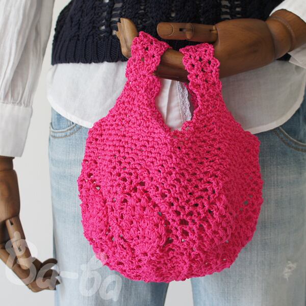 さらっとしたサマーヤーンのパイナップル模様を編み込んだ小さな手さげ袋。