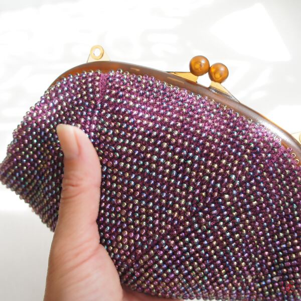 全面にガラスビーズを編み込んでプチバッグを制作しました。