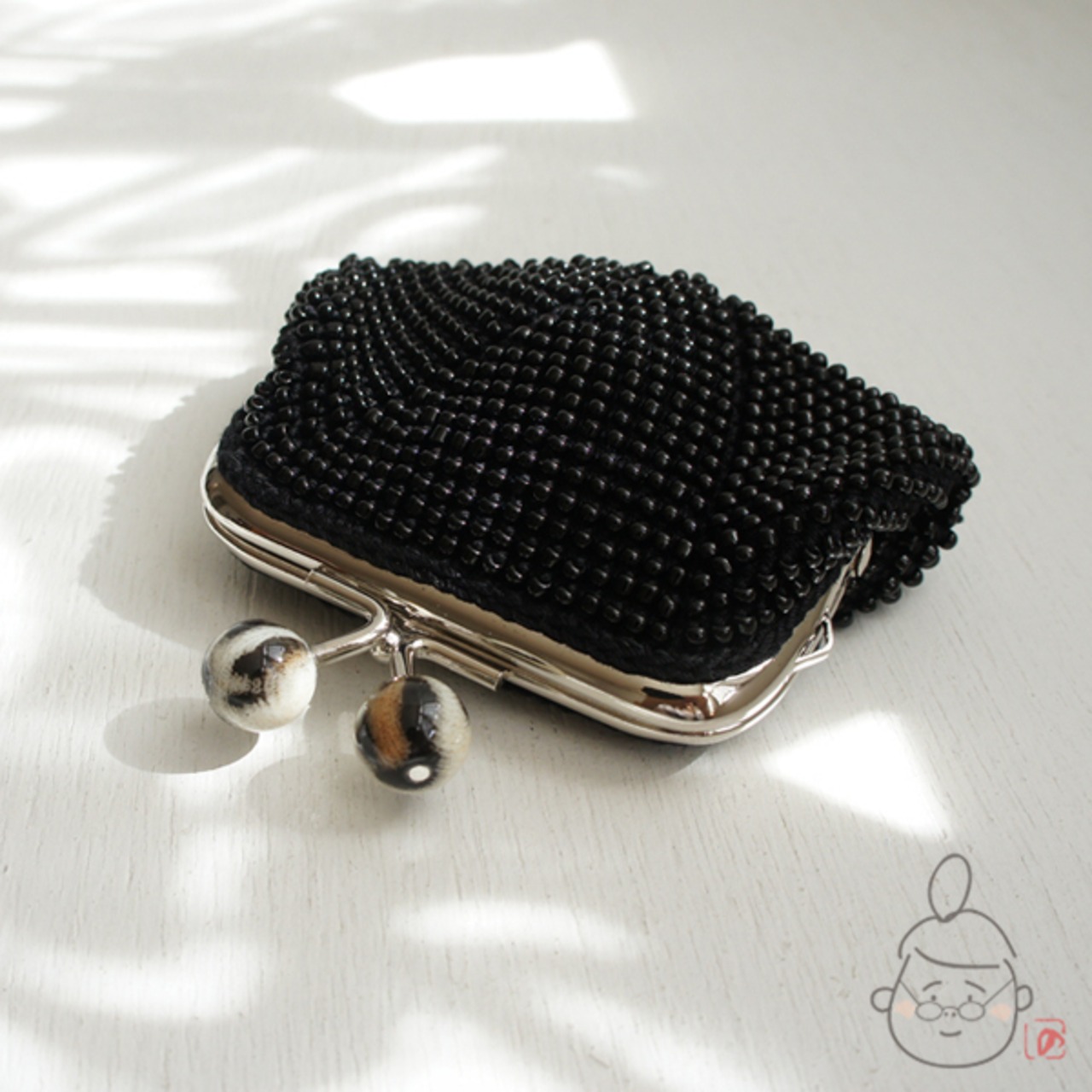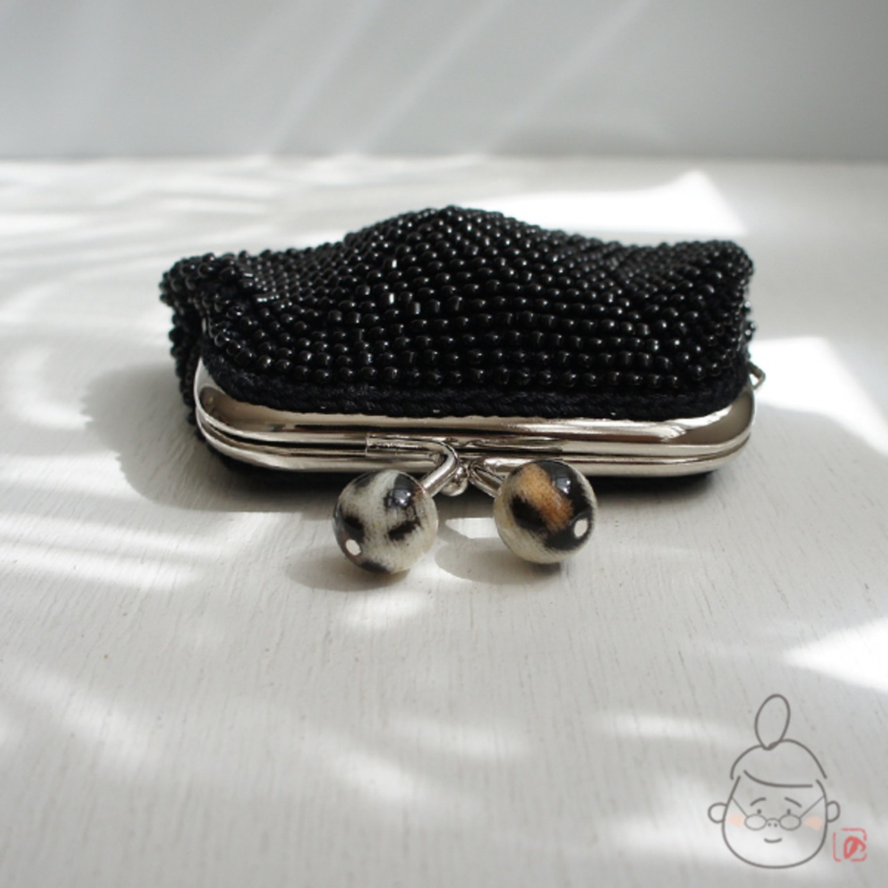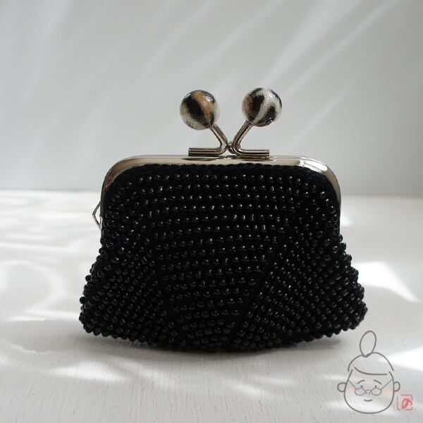 ばあば作♡総ガラスビーズのがま口(chatnoir・1275)