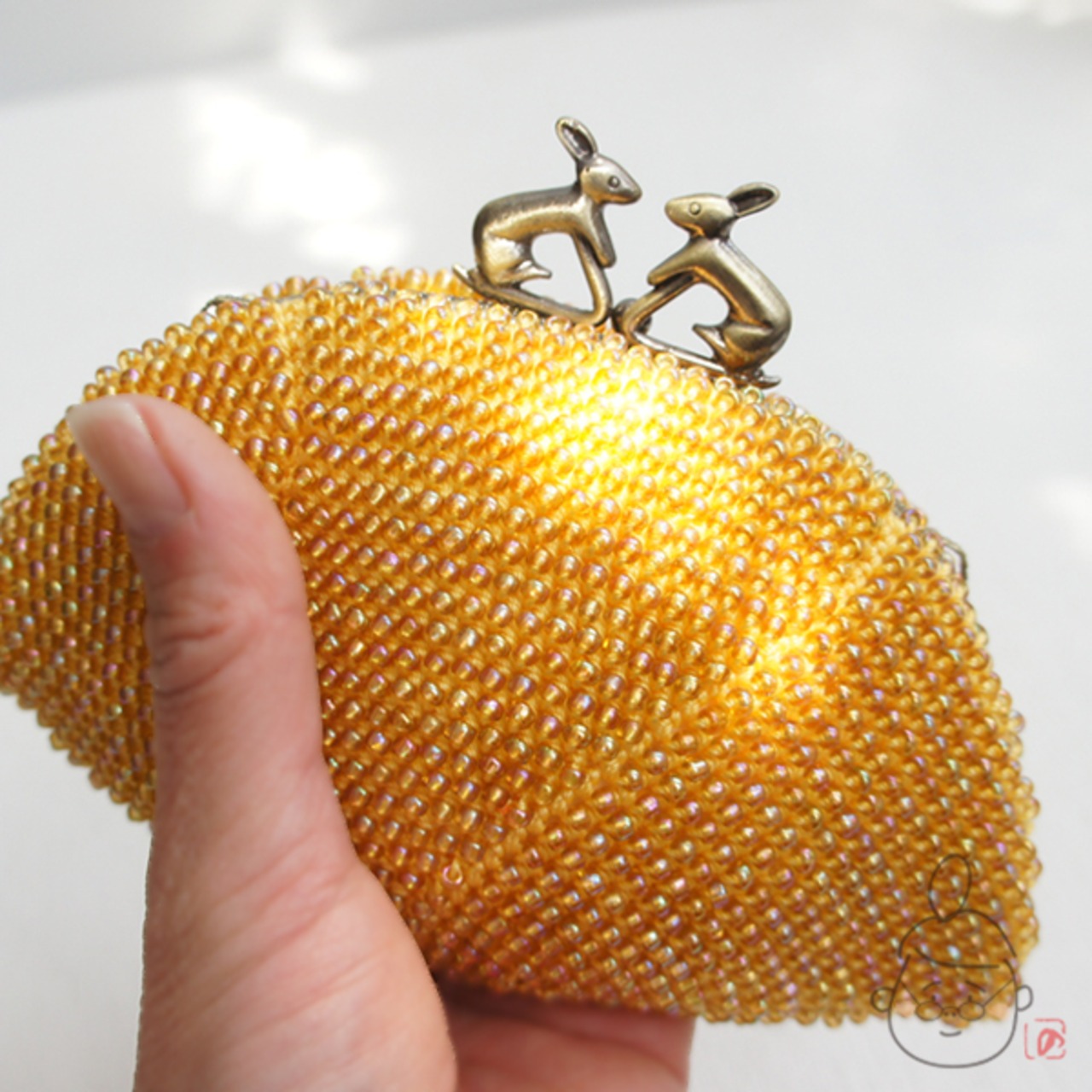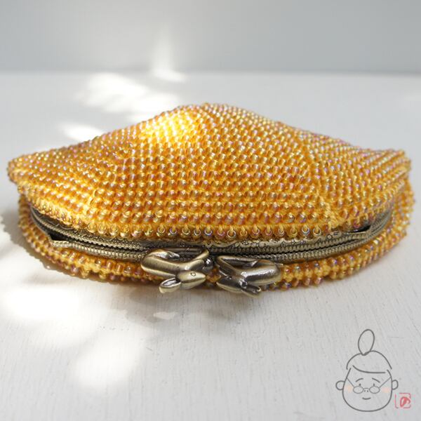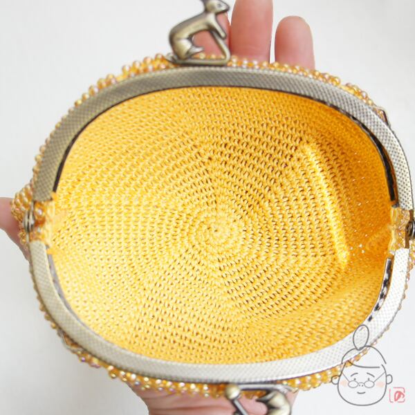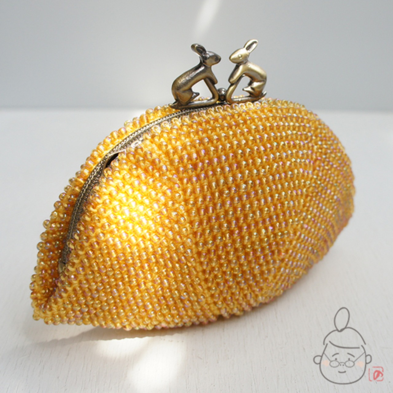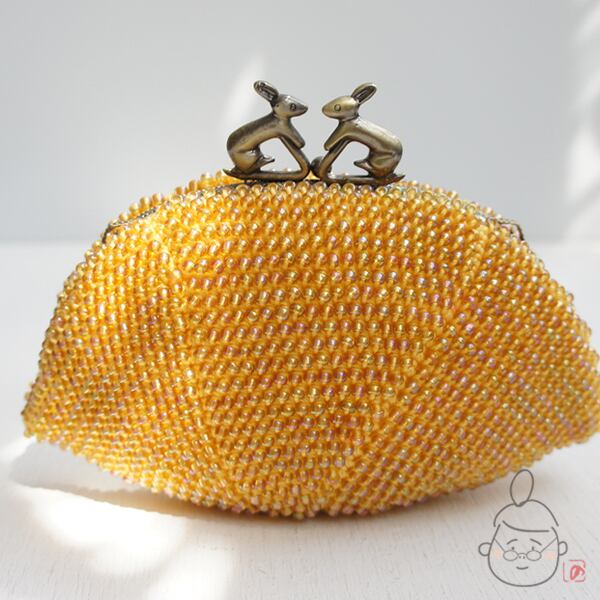 ばあば作☆☆さらに大きめビーズのうさぎがま口 (やまぶき・1205)