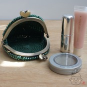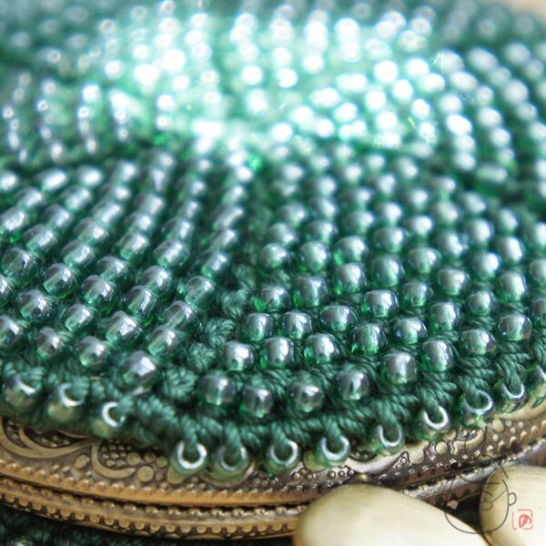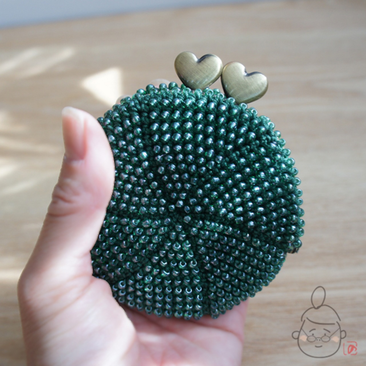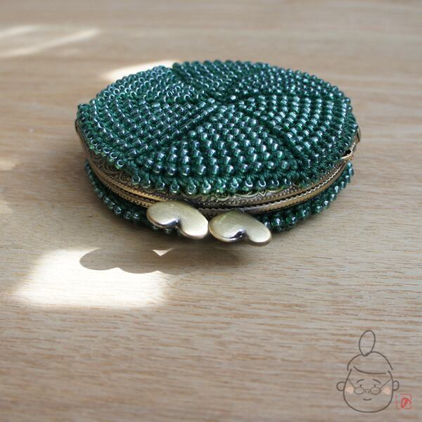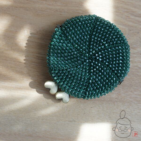 ばあば作♥ガラスビーズのまんまるがま口(マラカイトグリーン・1244)