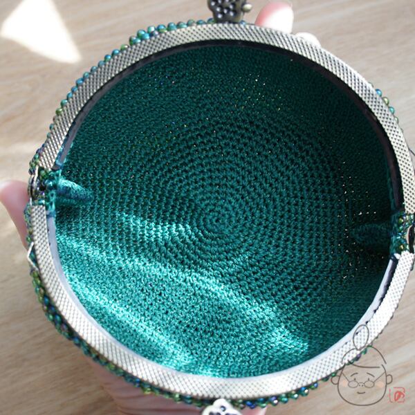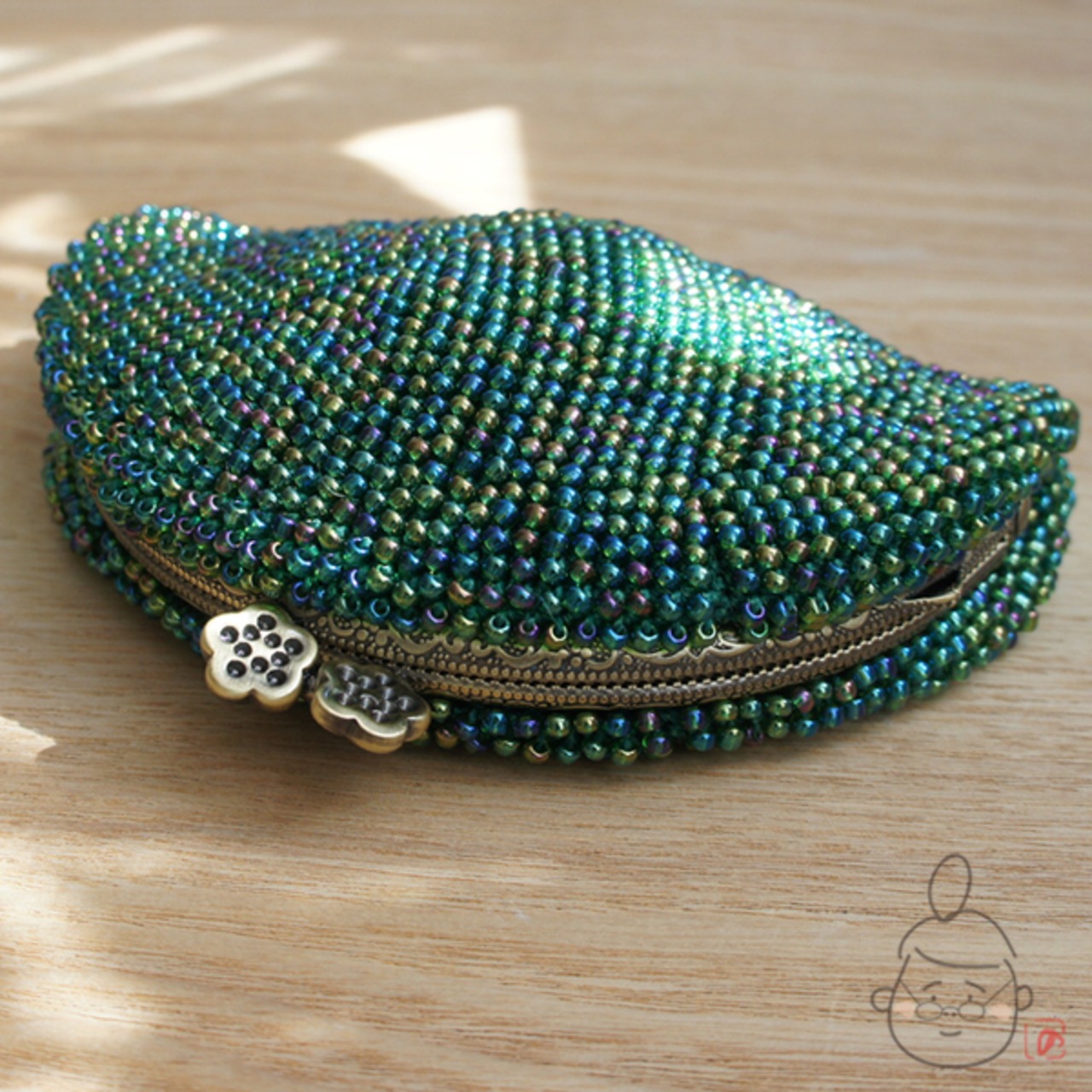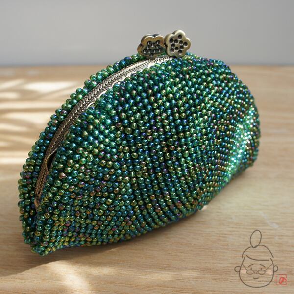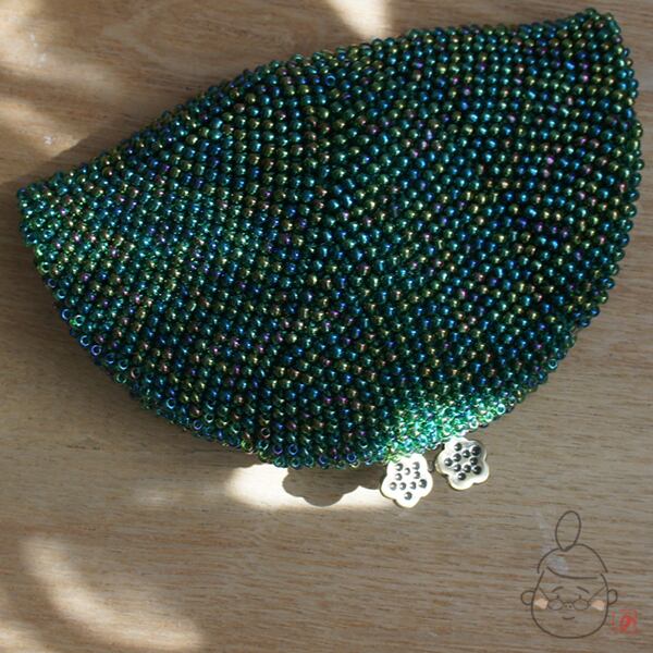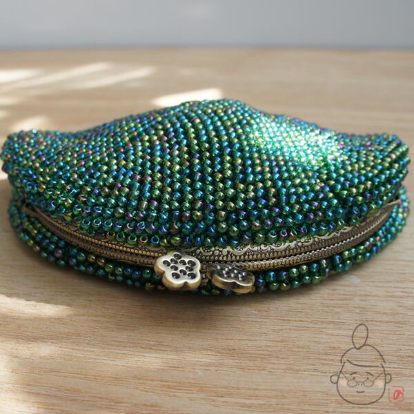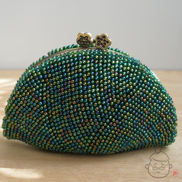 ばあば作☆☆さらに大きめ・ガラスビーズのがま口 (paradisegreen・1247)