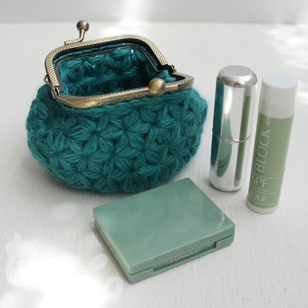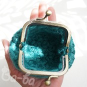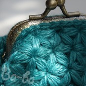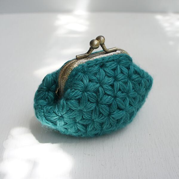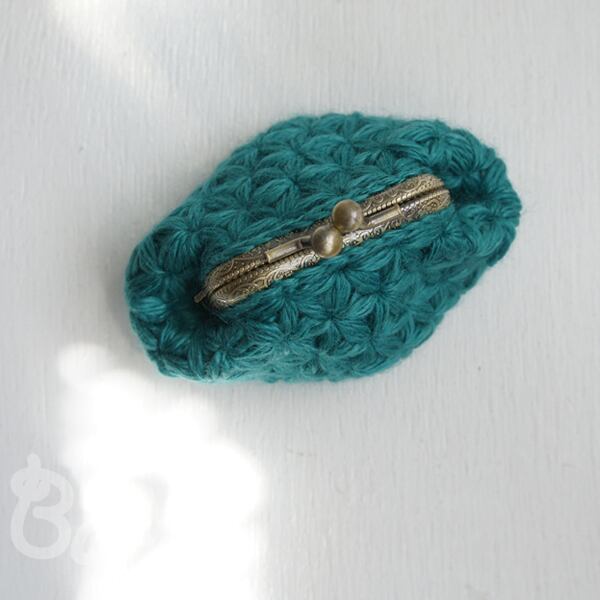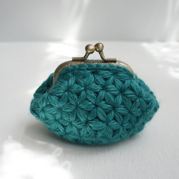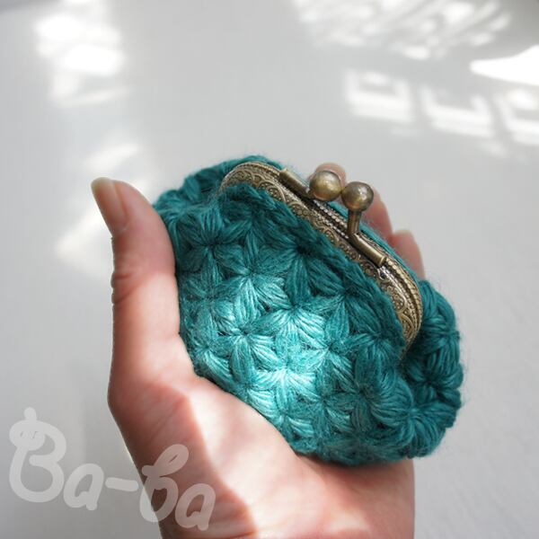 ばあば作♪ふわっとリフ編みminiがま口(青緑・C1337)