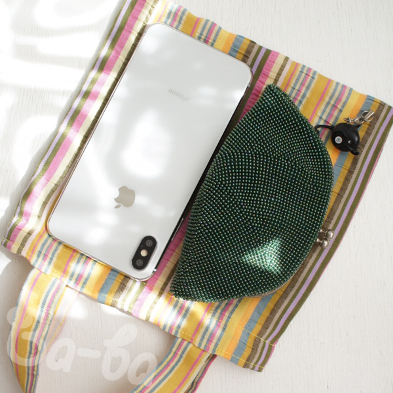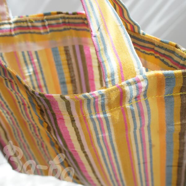送料無料♪ ばあば作、レトロな手さげバッグ(stripe・RB36)