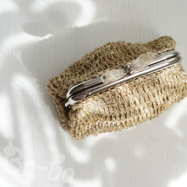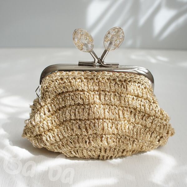 つまみと同じトーンの金色糸をソフトに編み上げました。