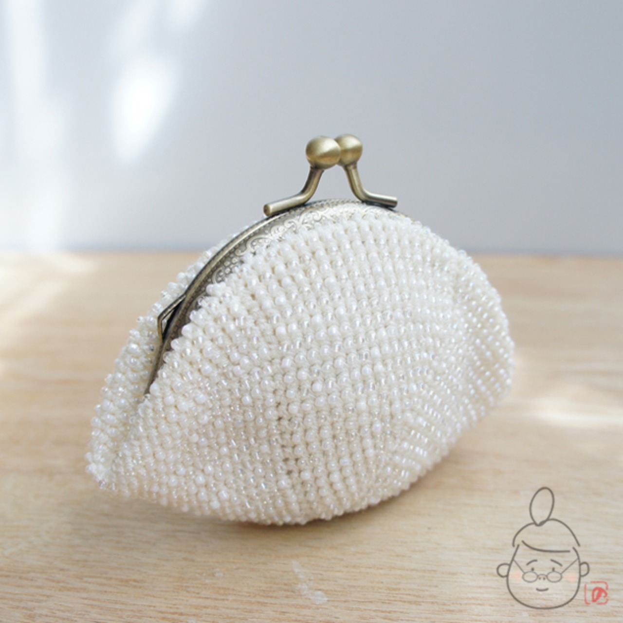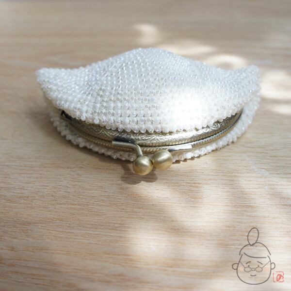ばあば作☆シードビーズのがま口(latte・1304)