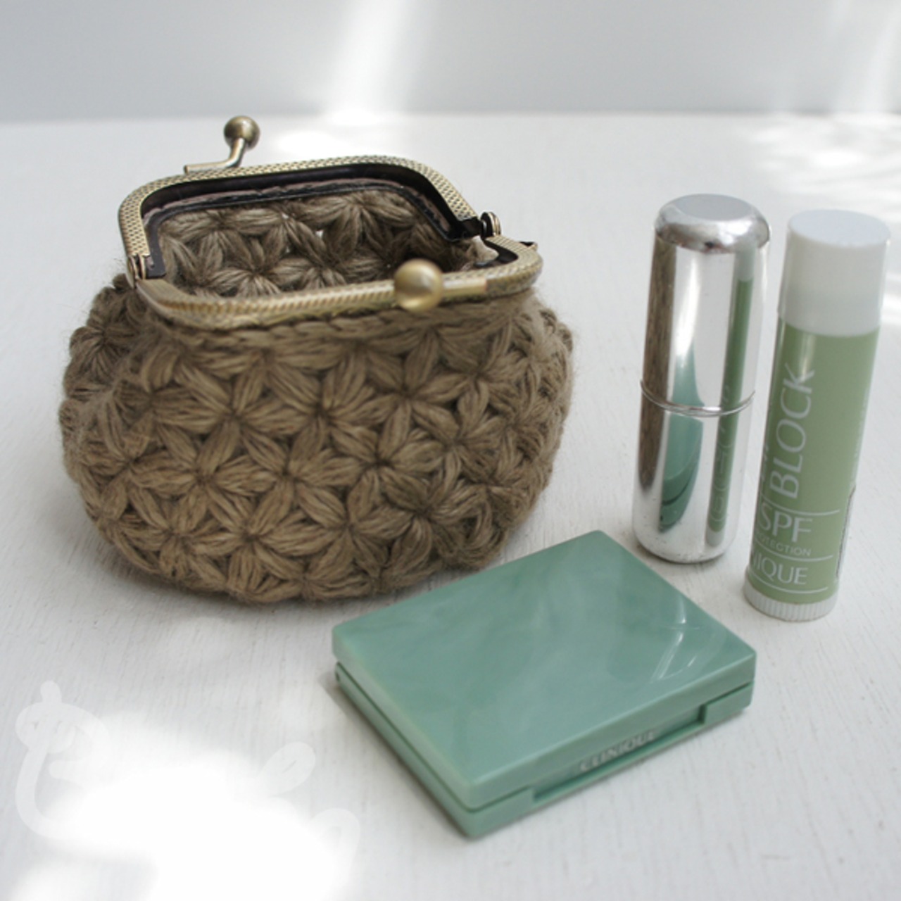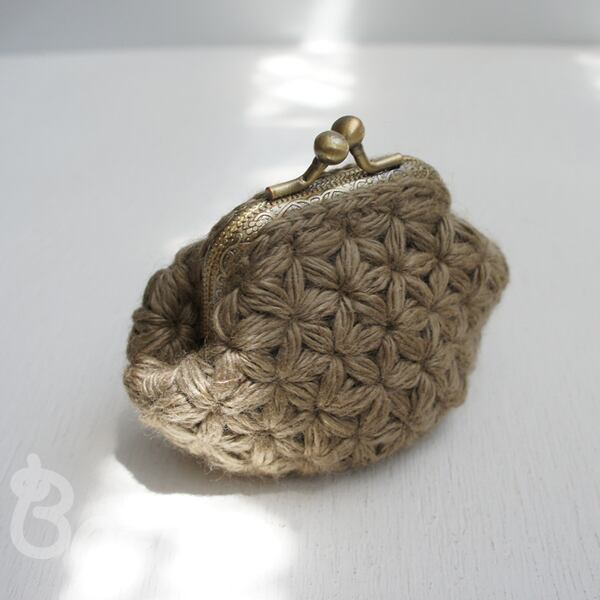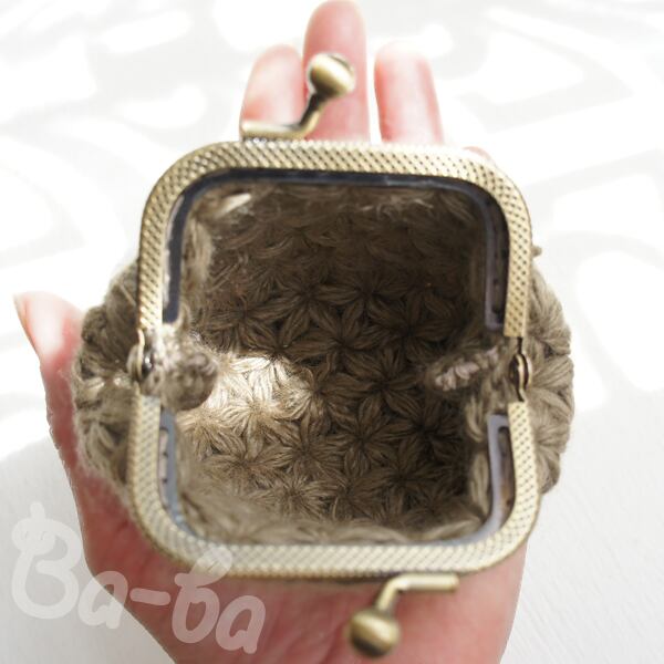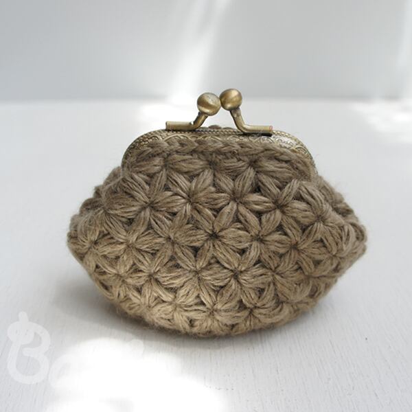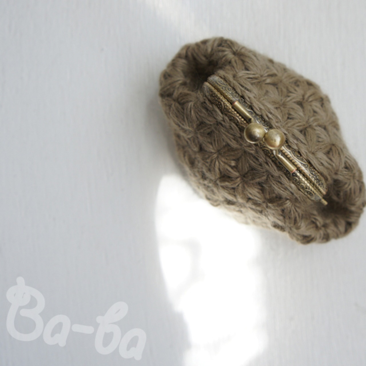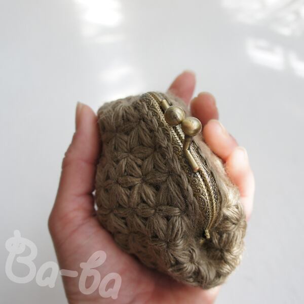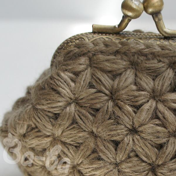ばあば作♪ふわっとリフ編みminiがま口(樺茶・C1338)