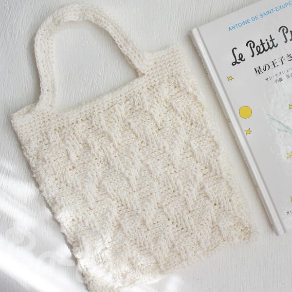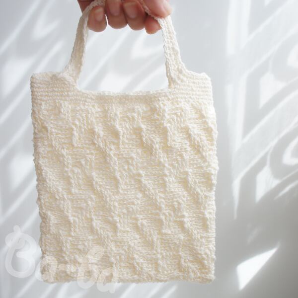 ばあば作♪模様編みの、ふんわり手さげバッグ(yagasuri・MB6)