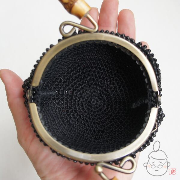 口金 : アンティークゴールド、バンブーつまみ、8.5cm、丸型、片カン
