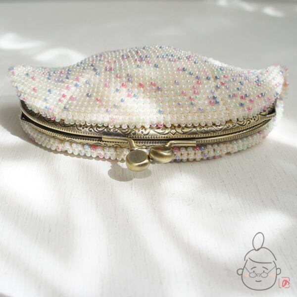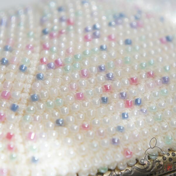 2mmの日本製シードビーズをひとつぶづつ全面に編み込んだ、上質ながま口です。