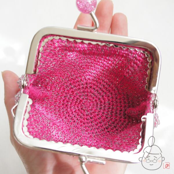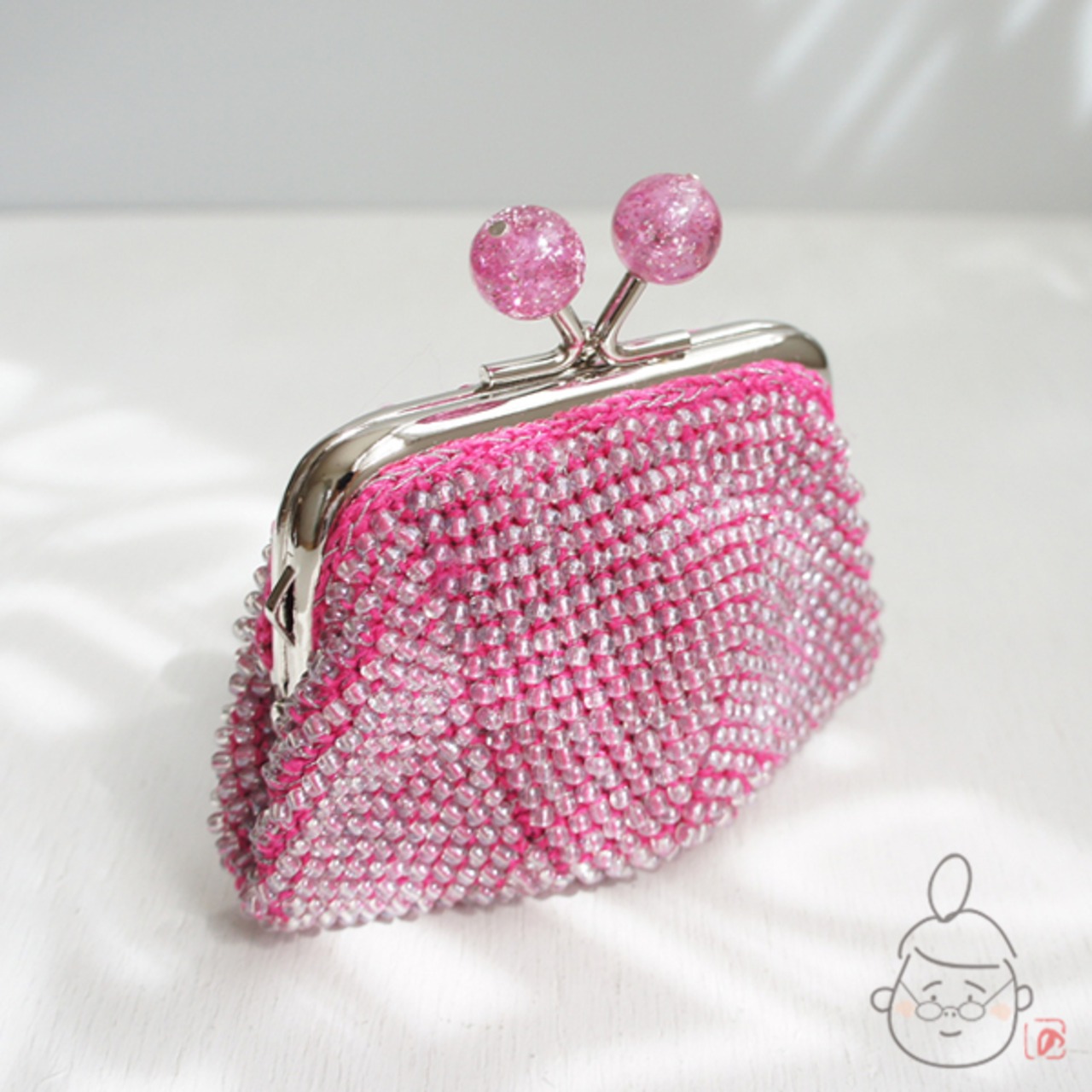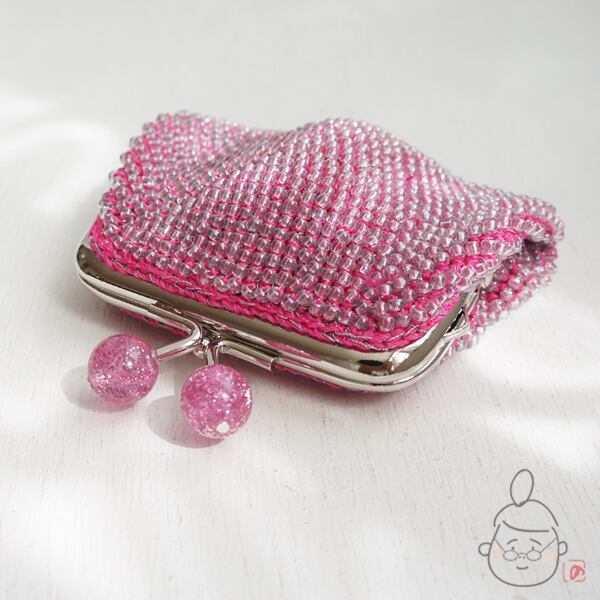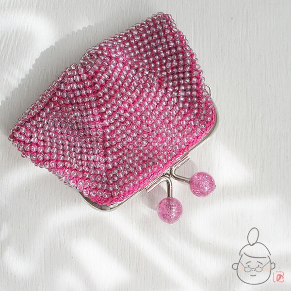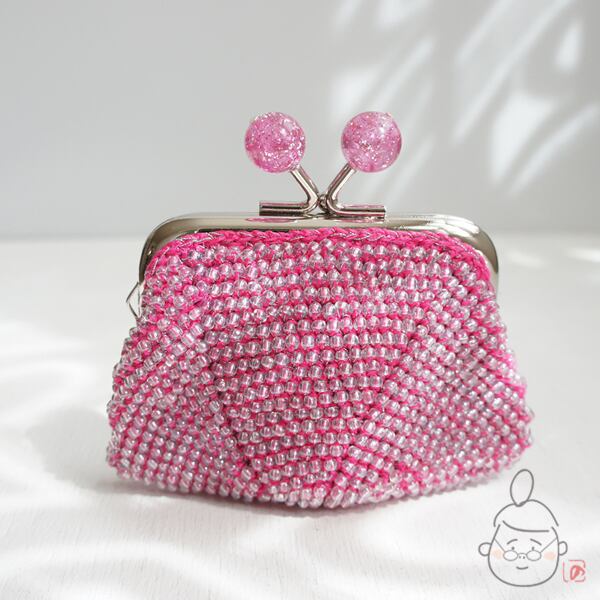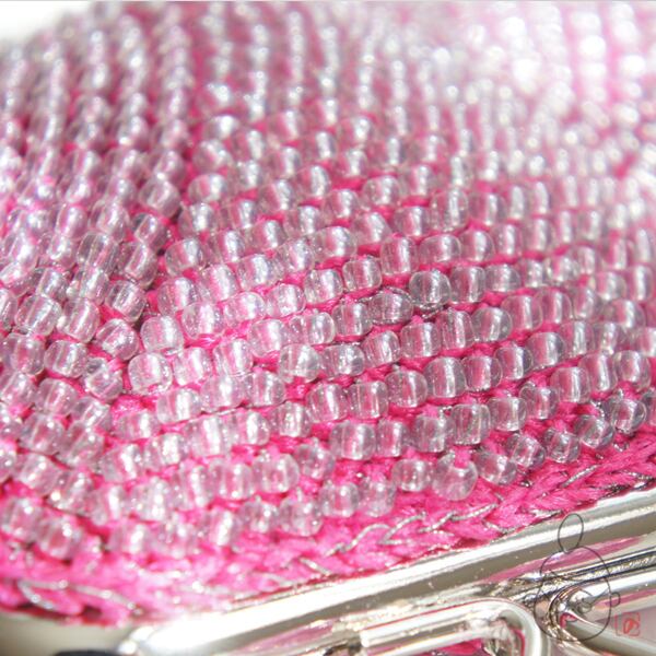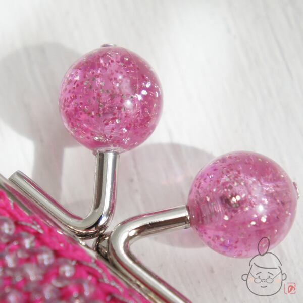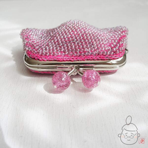ばあば作☆☆総ガラスビーズのがま口(ラメピンク・1306)