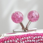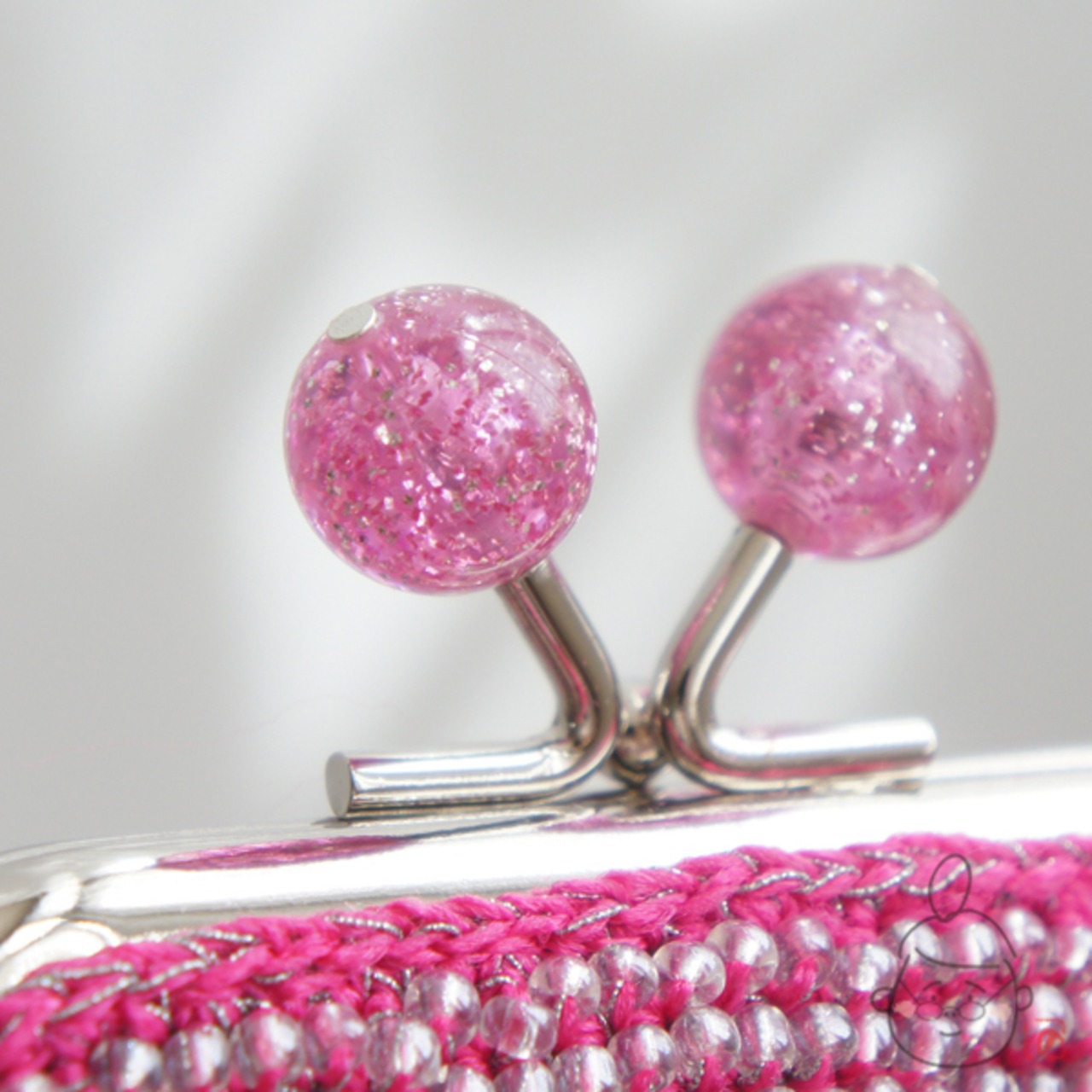 口金 : シルバー×ラメ入りクリアピンク、8.5cm、角型、片カン