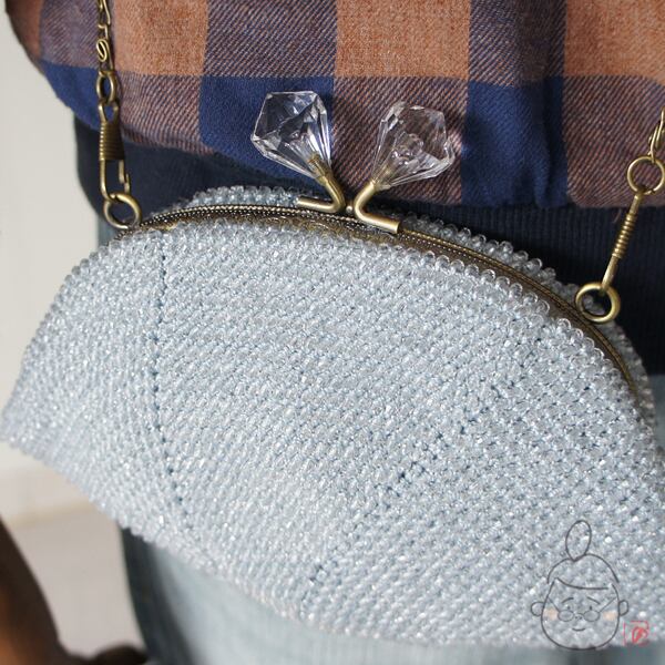 全面にアクリルビーズを編み込んでプチバッグを制作しました。
