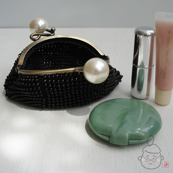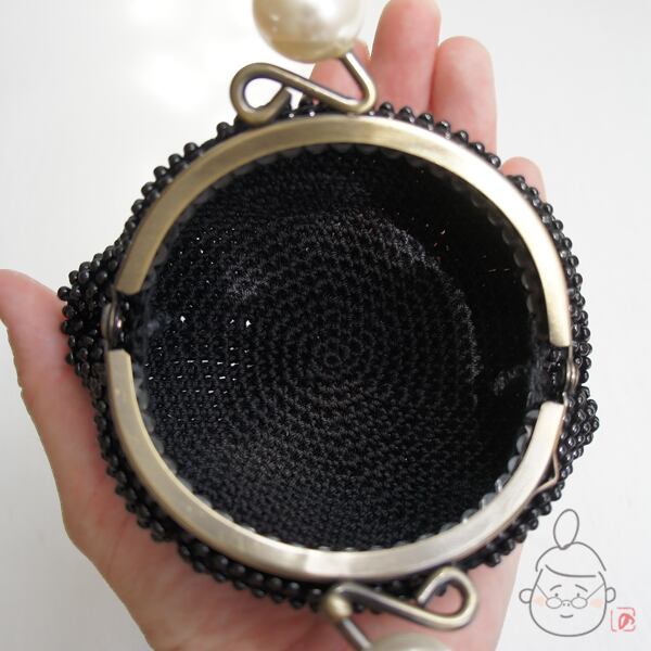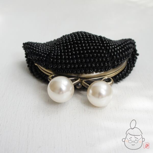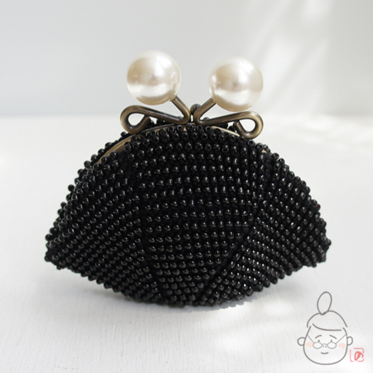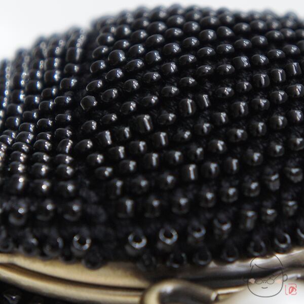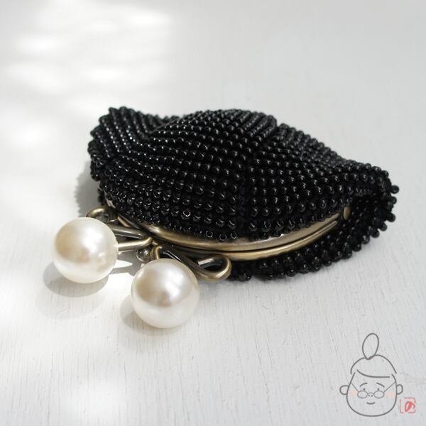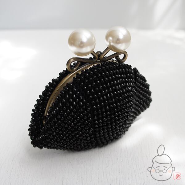 ばあば作☆総ガラスビーズの「大きめパール」がま口(漆黒・1286)