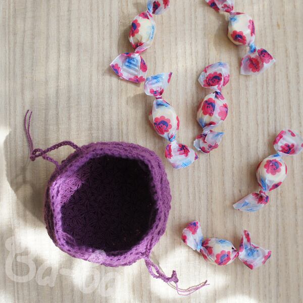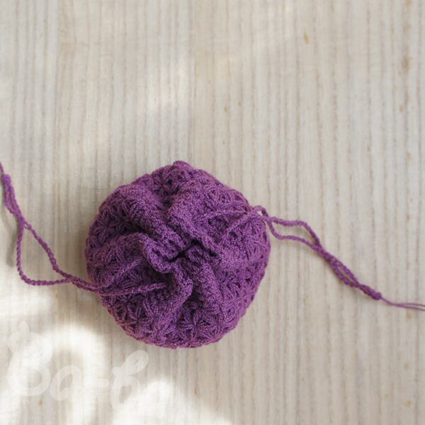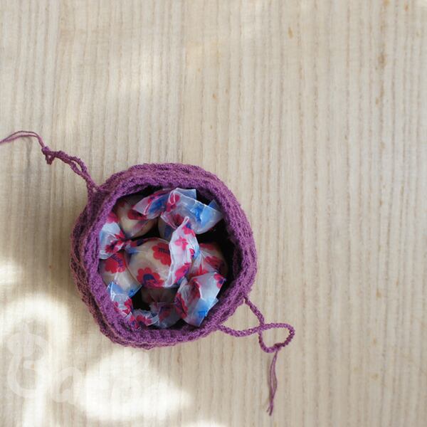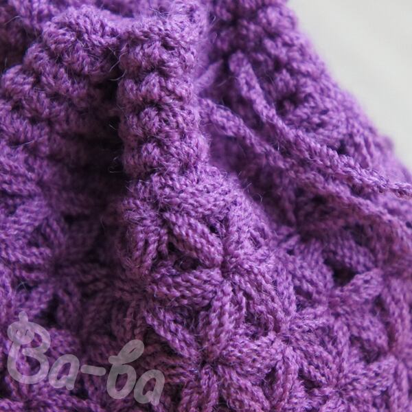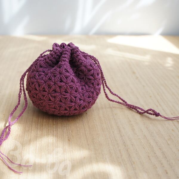 ばあば作、細かいリフ編みのちびちび巾着(ぶどう・KPPR4)