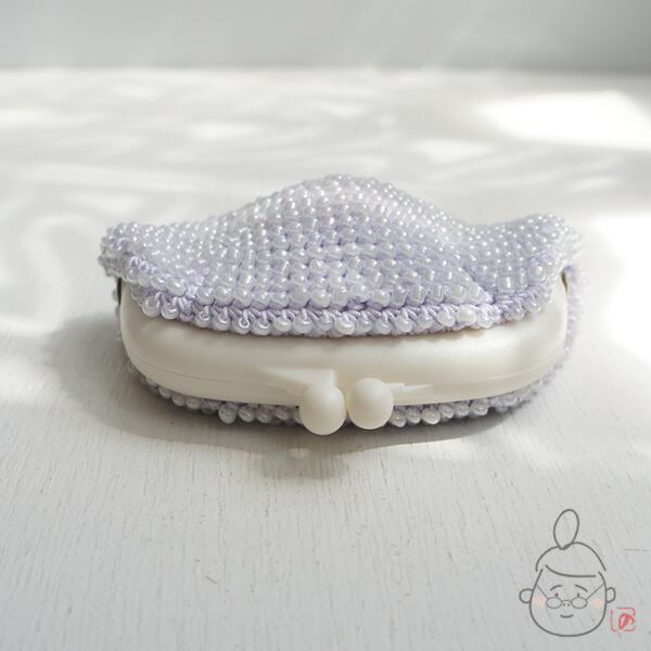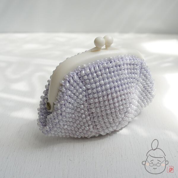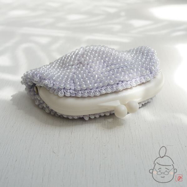 ガラスビーズをひとつぶづつ編み込んだがま口です。
