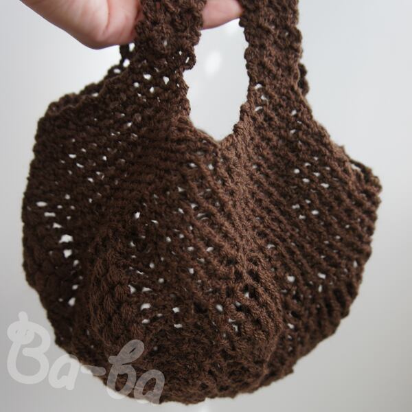 ふんわりとしたサマーヤーンのパイナップル模様を編み込んだ小さな手さげ袋。