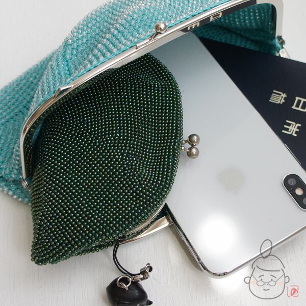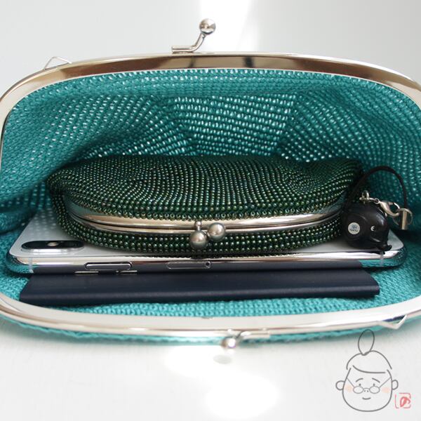 スマホ、12.5cmがま口。パスポートもすっぽり入る大きさにです。
