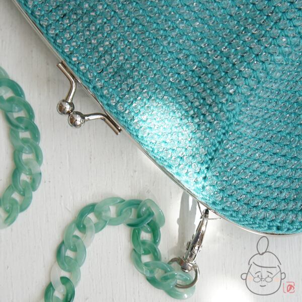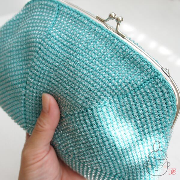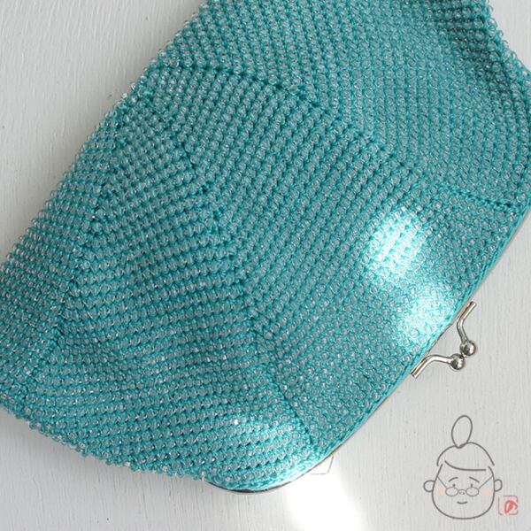 八角形の編地を18cm口金と合わせると程よくふんわりとし、