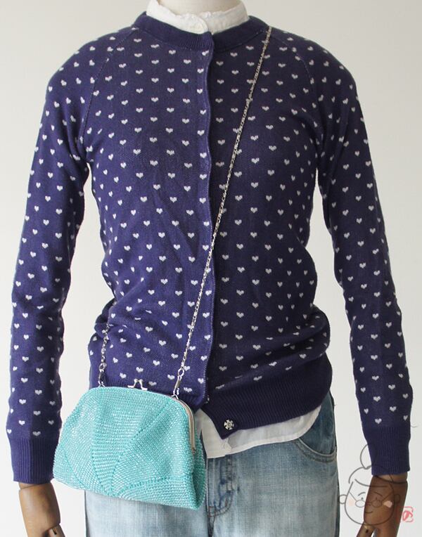 全体にアクリルビーズをひとつぶづつ編み込みました。