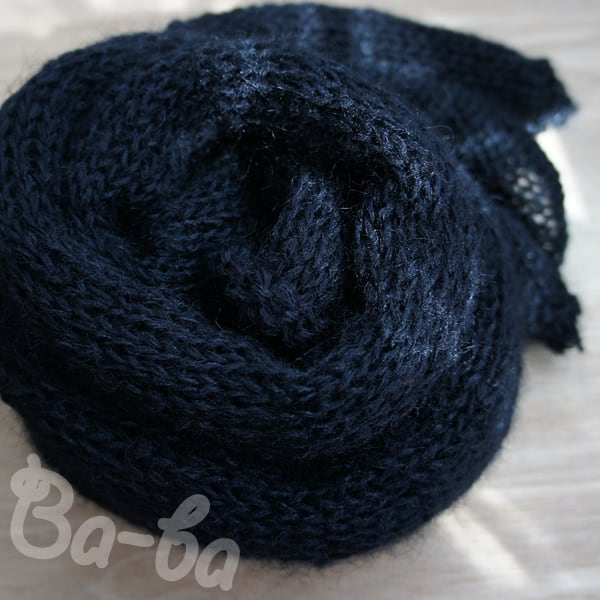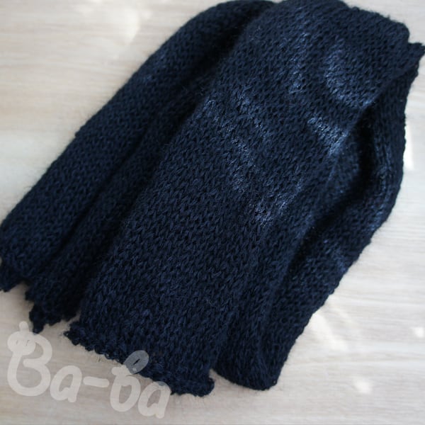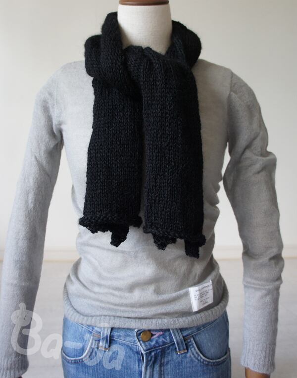ばあばのあったか機械編みマフラー(モヘヤブラック・M3)