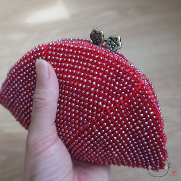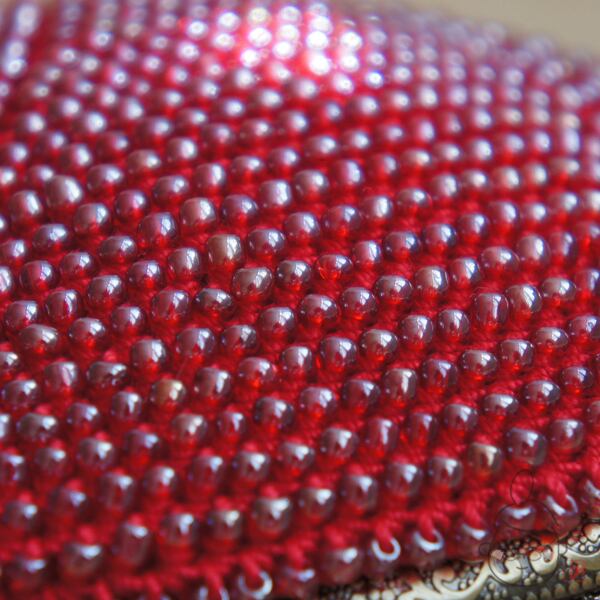 キラッと輝く3mmのビーズを、ひとつぶづつ全面に編み込みました。
