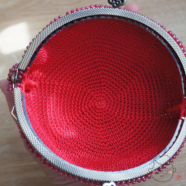 花のつまみの口金は12.5cm丸形を使用し収納力バツグン、なんでもいろいろ入ります。