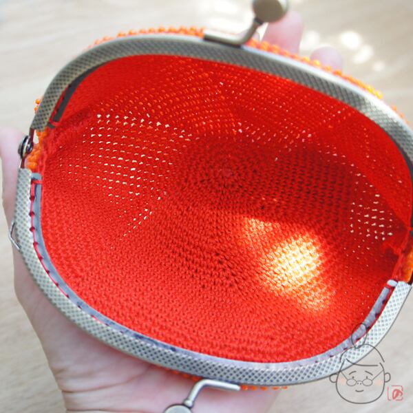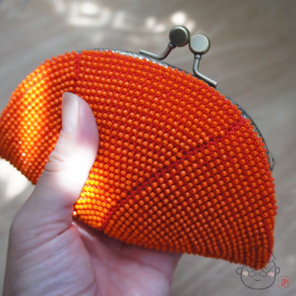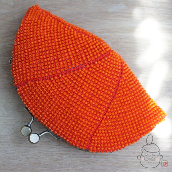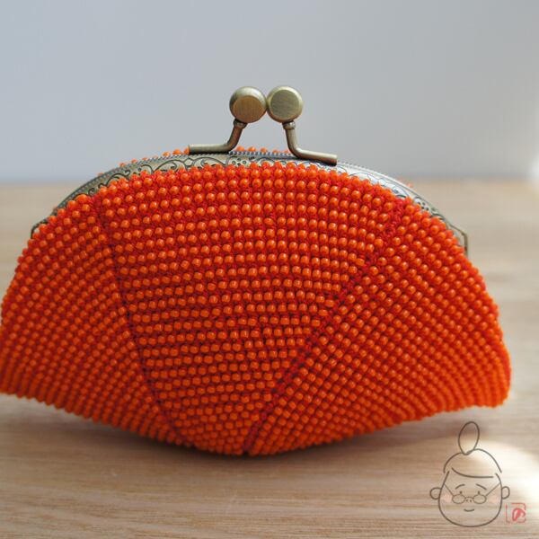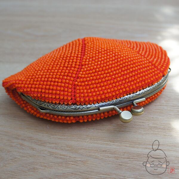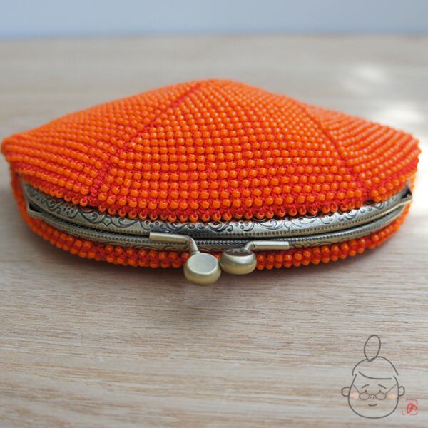 ばあば作☆シードビーズのさらに大きめがま口(蜜柑・1113)