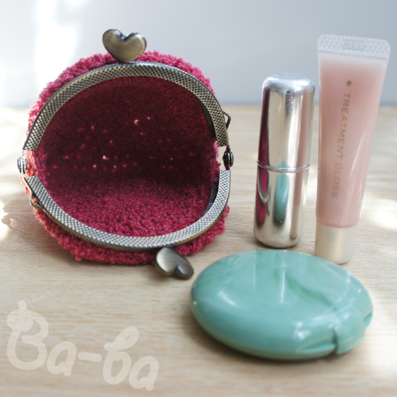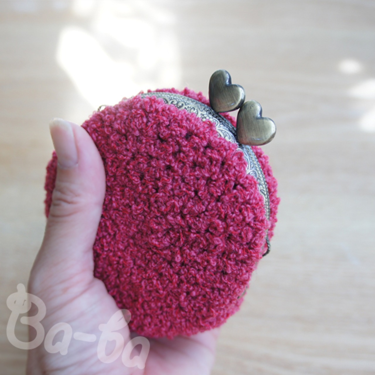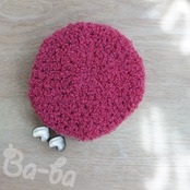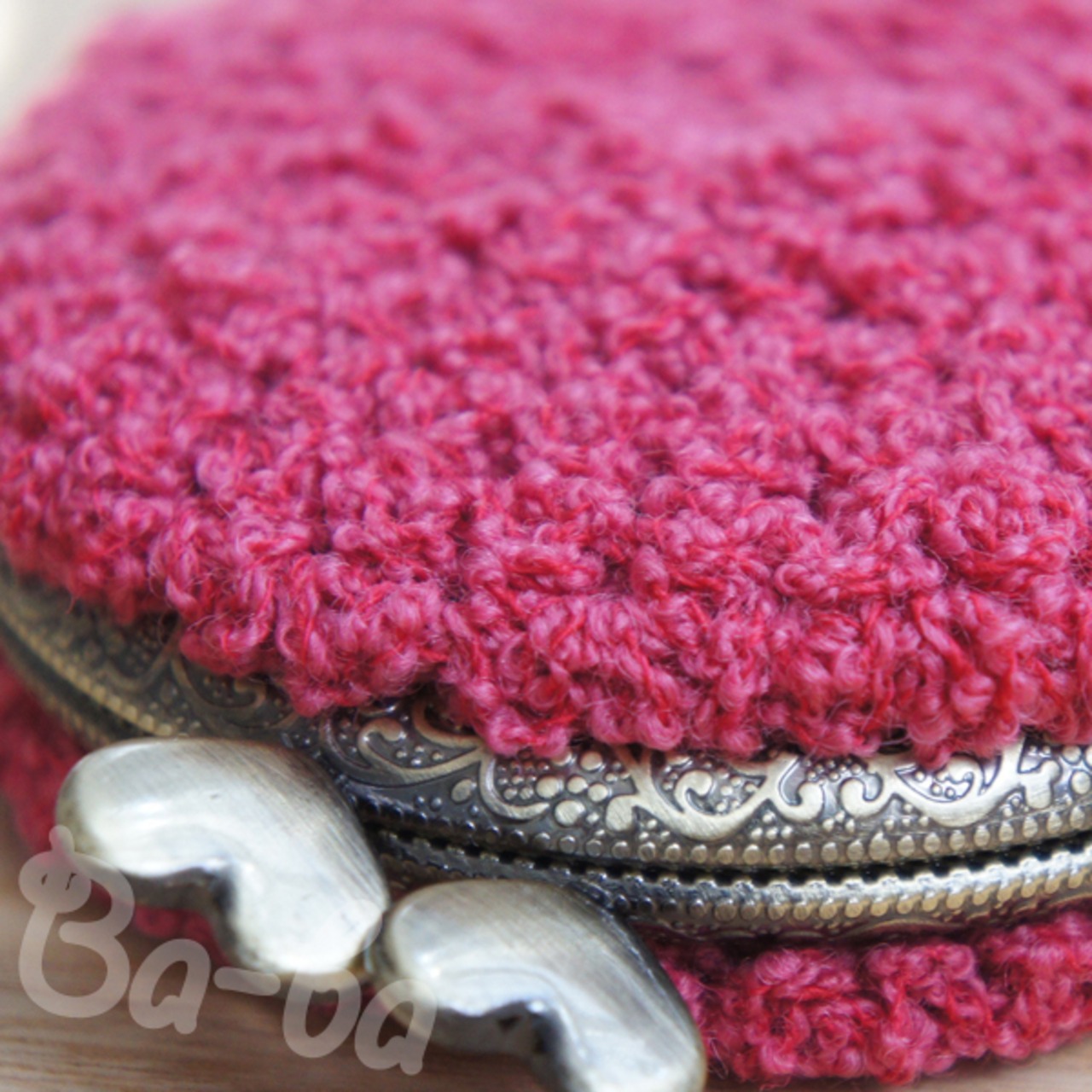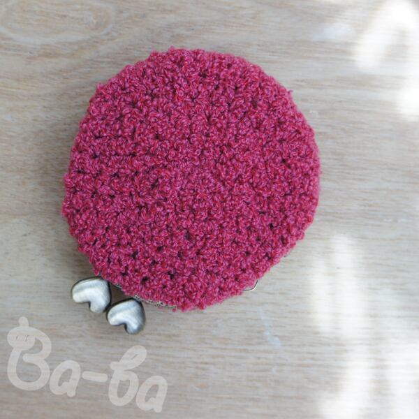 ベリーピンクのブークレヤーンを丸く編み上げました。