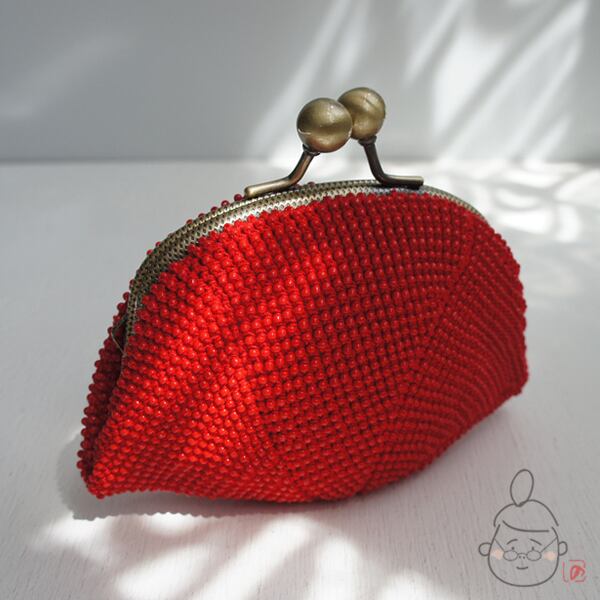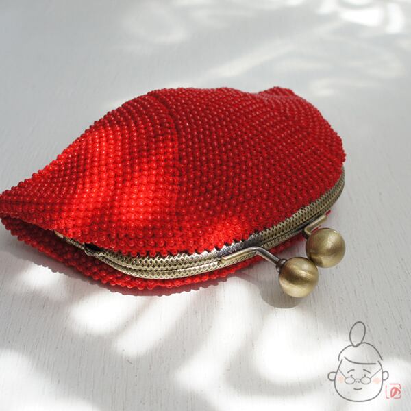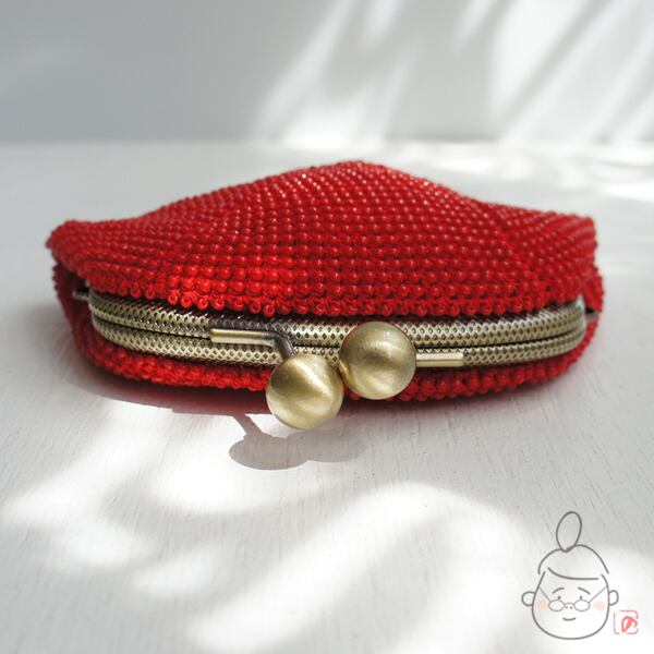 ばあば作♪シードビーズの大きめがま口(rouge・1298)