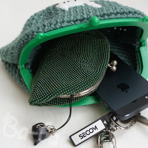 ばあば作♪ふりかえるシロのグリーンがま口(グリーン・C1356)