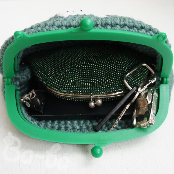 軽量縫いつけプラ口金を使用し、本体としっかり固定しています。