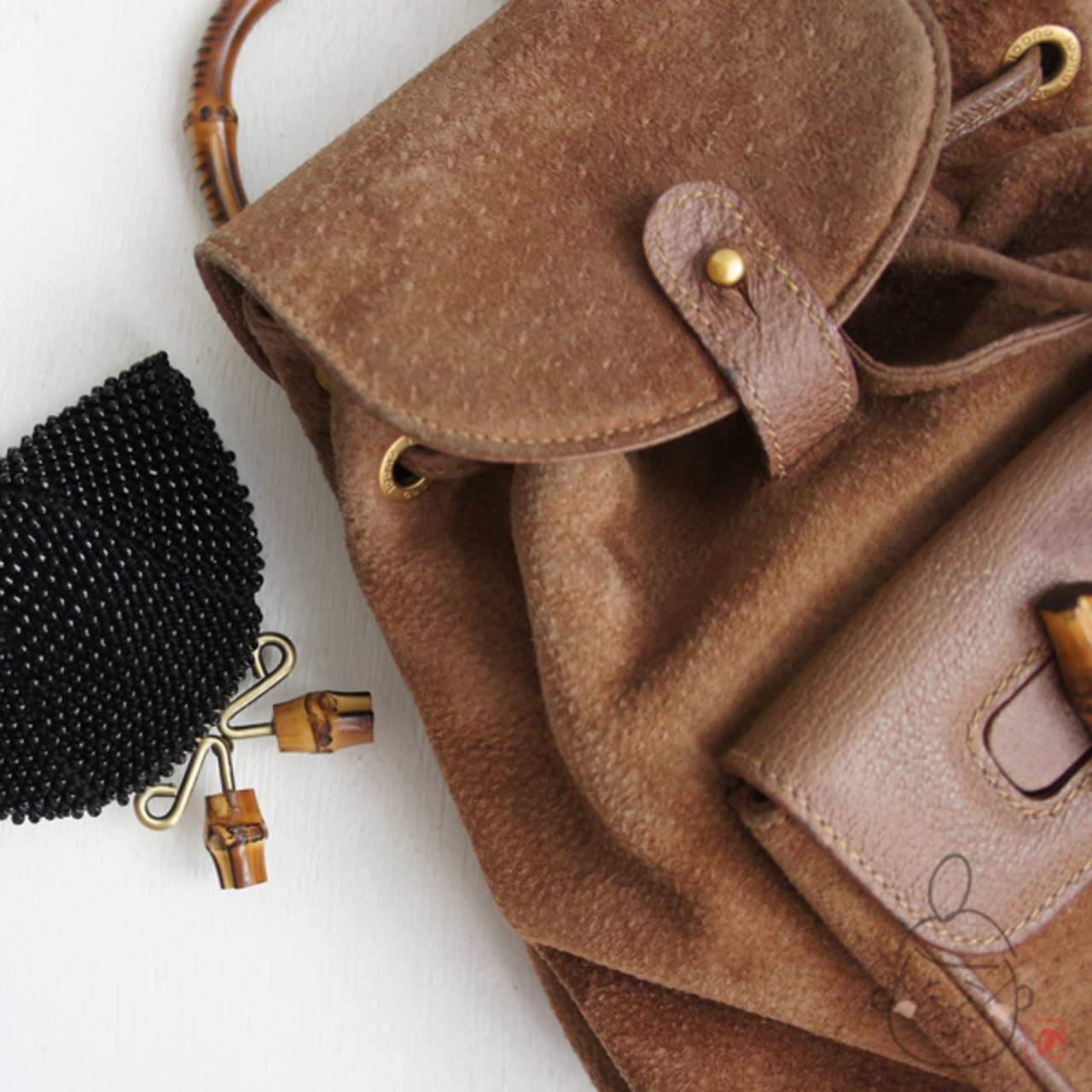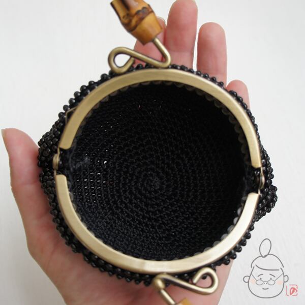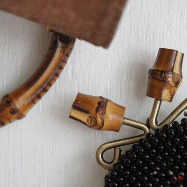 口金 : アンティークゴールド、バンブーつまみ、8.5cm、丸型、片カン